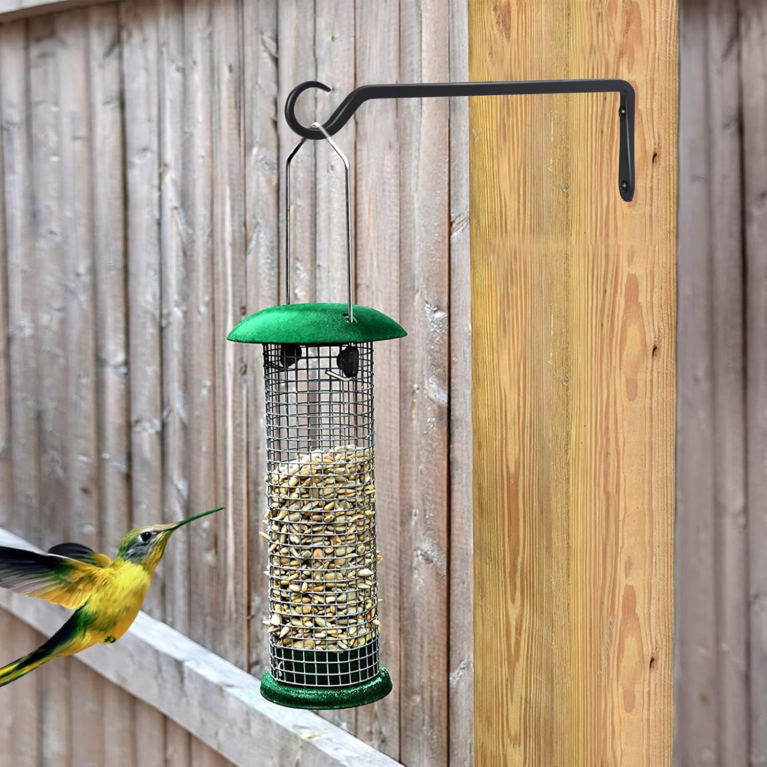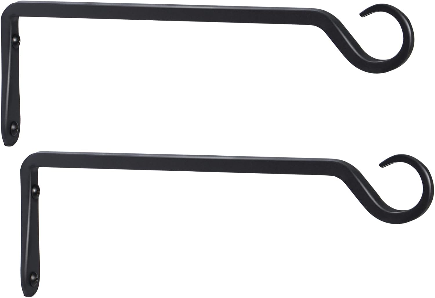 2 Pack Premium Forged Wall Hook, Sturdy Hanging Plant Bracket, Elegant Hook for Bird Feeders, Planters, Lanterns, Wind Chimes Indoor Outdoor, Upgrade Black, 12 Inch