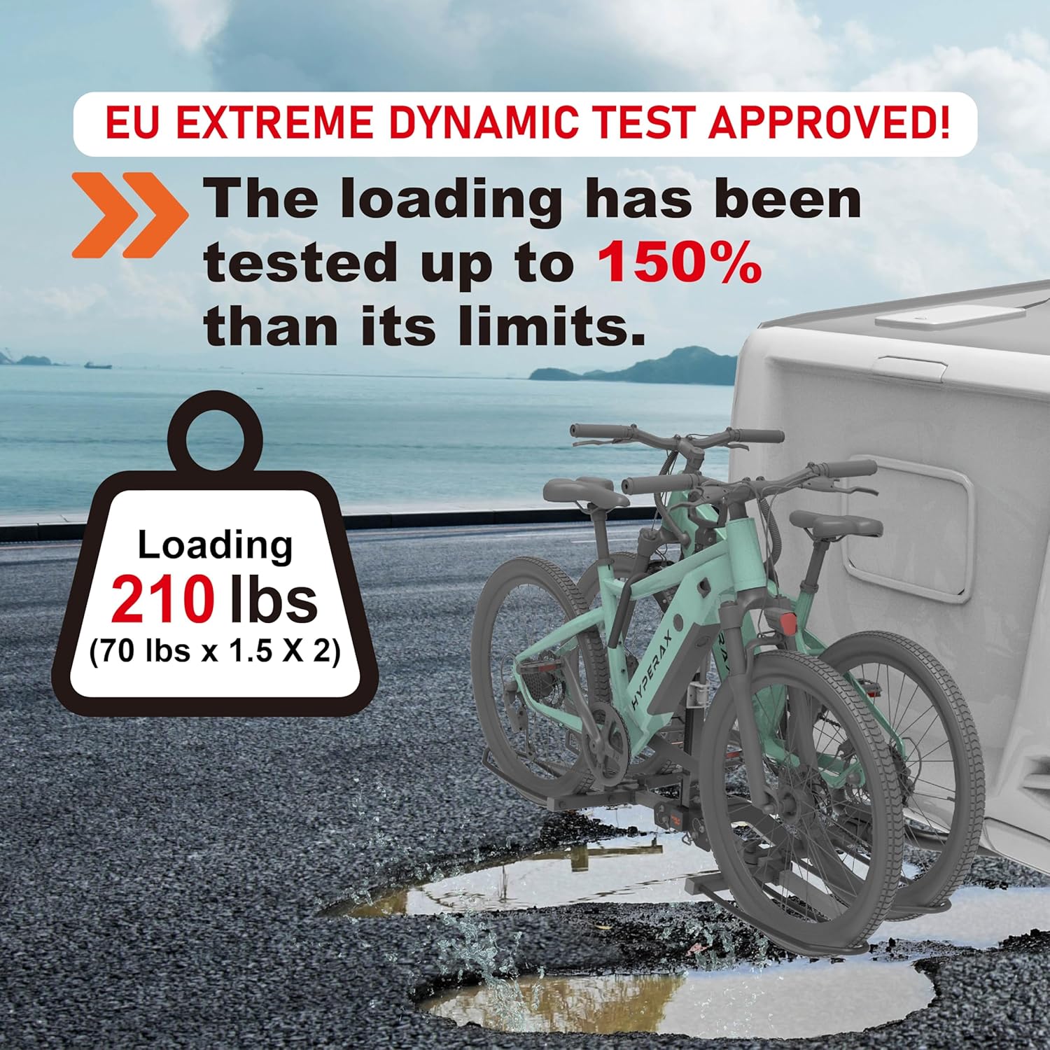 - EXCLUSIVE DESIGN FOR RV: This series features a strengthened hitch mount designed carrier to fit Class 3 or higher hitch receivers (front and/or back), giving you extra safety on the road. Please note that hitch receivers must be CHASSIS MOUNTED. Mount the hitch rack to BUMPER MOUNTED HITCH RECEIVER may lead to bumper tearing off and result in SERIOUS DAMAGE to the RV and even DEADLY INJURY. Caution: Due to tight space, please do not install the Volt RV between front vehicle and the trailer.