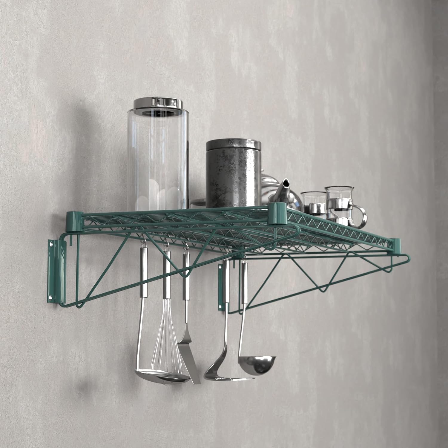 18" x 36" Green Epoxy Wire Wall Mount Shelf