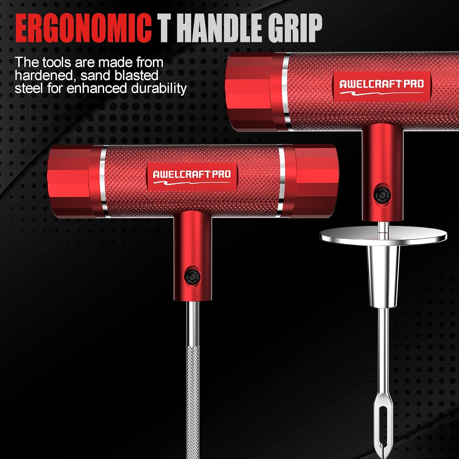 - AWELCRAFT tire repair kit is a portable and practical kit in your car or garage. All goods are packed in a durable case. This portable case provides quick access, well organization and easy carry.