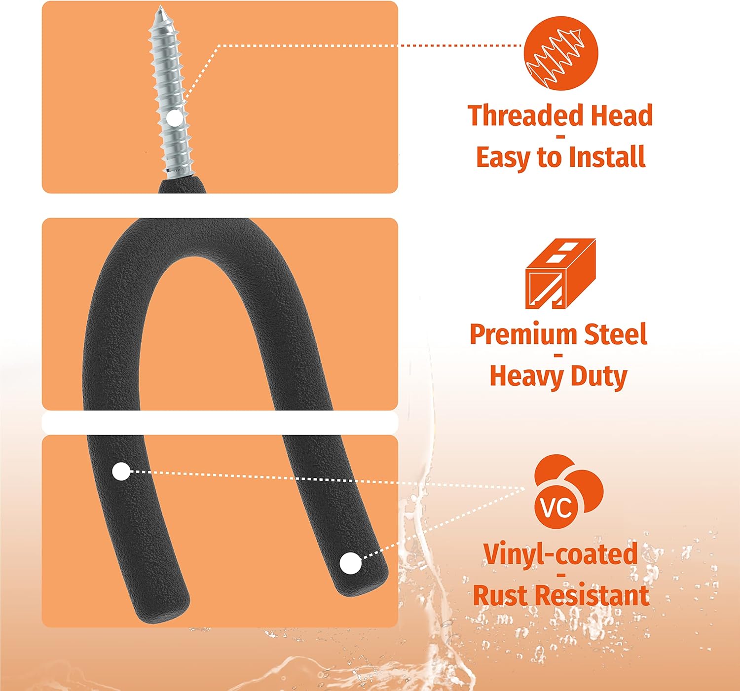 HUHOLE Screw in U Hook, Black, 16PC, Shovel Holder Wall Mount, U Hooks for Hanging Garden Tools