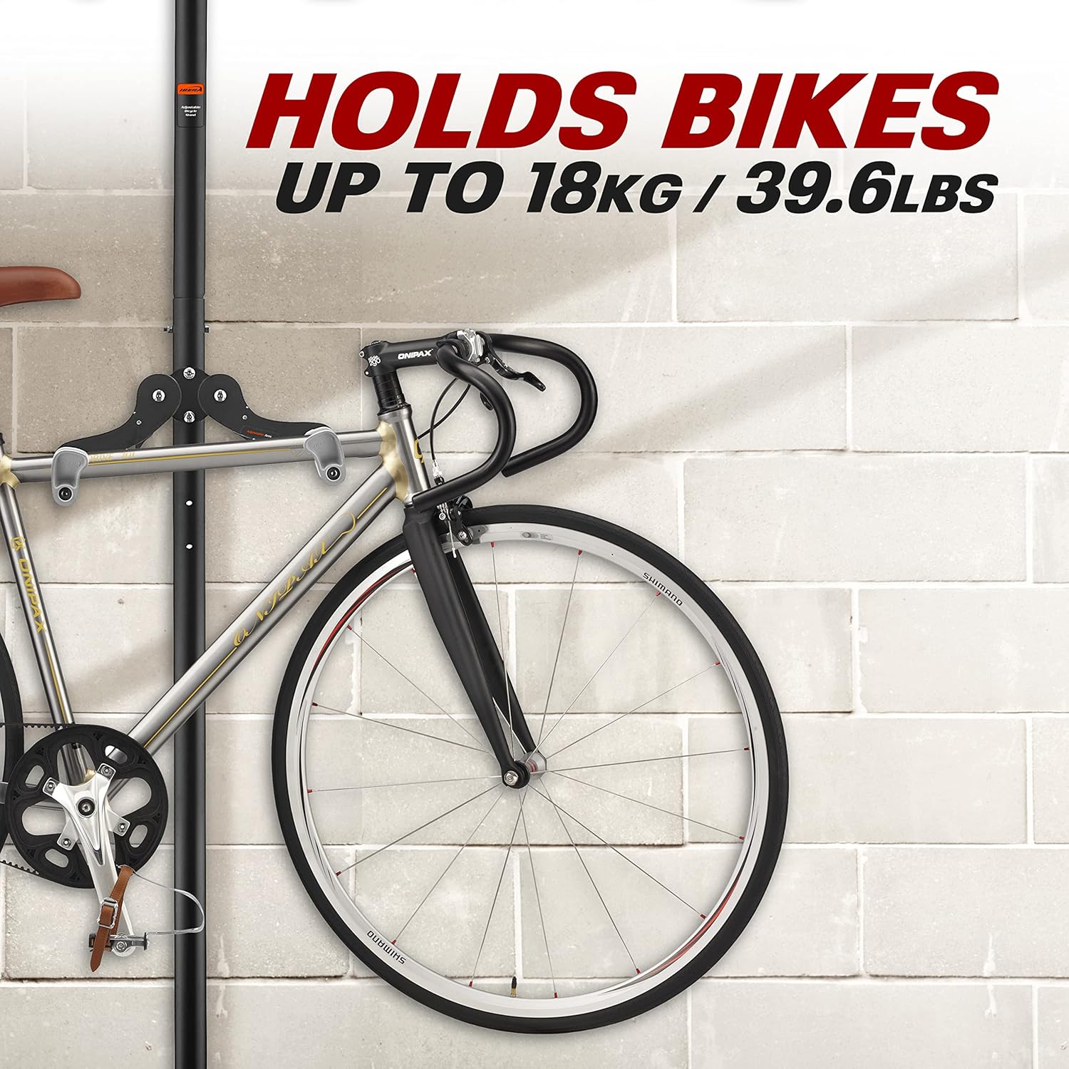 Ibera Bike Wall Mount - Secure Bike Storage up to 18kg with Adjustable Frame Holder & Soft Rubber Cradles - Garage Bike Rack for Road, MTB, Kids, Hybrid Bikes - Easy Installation & Space-Saving Design