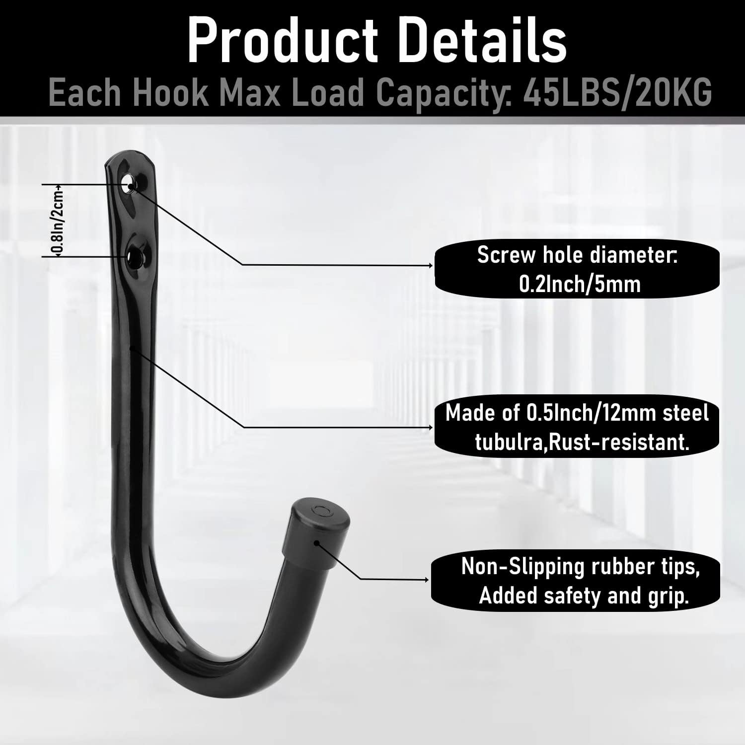 - 【HIGH QUALITY MATERIAL】Whrsinlor wall mount garage storage hooks are made of tubular steel which is durable and sturdy, and it's powder coated and rust resistant, Each ladder hook can safely hold 45lbs/20 kg.