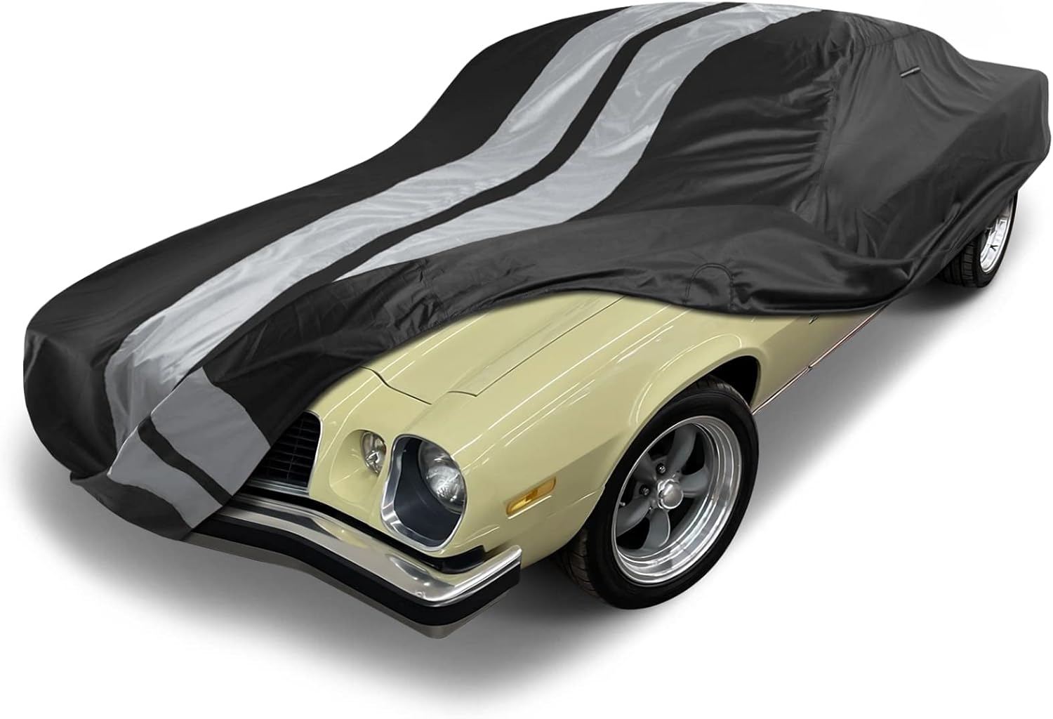 iCarCover Custom Car Cover Compatible with Camaro 1974-1981, Waterproof All Weather Rain Snow UV Sun Protector Full Exterior Indoor Outdoor Car Covers, Stripe (Black/Gray)