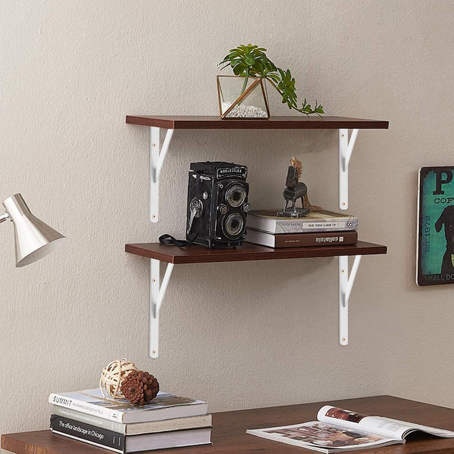 - 12-Pack shelf brackets: Maximize space with with style. Ideal for the kitchen, bathroom, bedroom, office & more. Our shelf brackets can be used as exhibition stand,bicycle stand,garden shelf, kitchen shelf,office shelf,etc