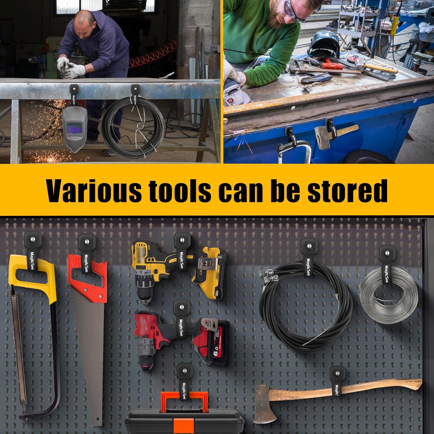 - Convenient and Quick Access: Attach the hooks to metal surface such as a toolbox, RV wall, cruise cabinet, ladder, pegboard around your workbench or vehicle to easily access your utility cord, cordless drills and impact drivers, etc.