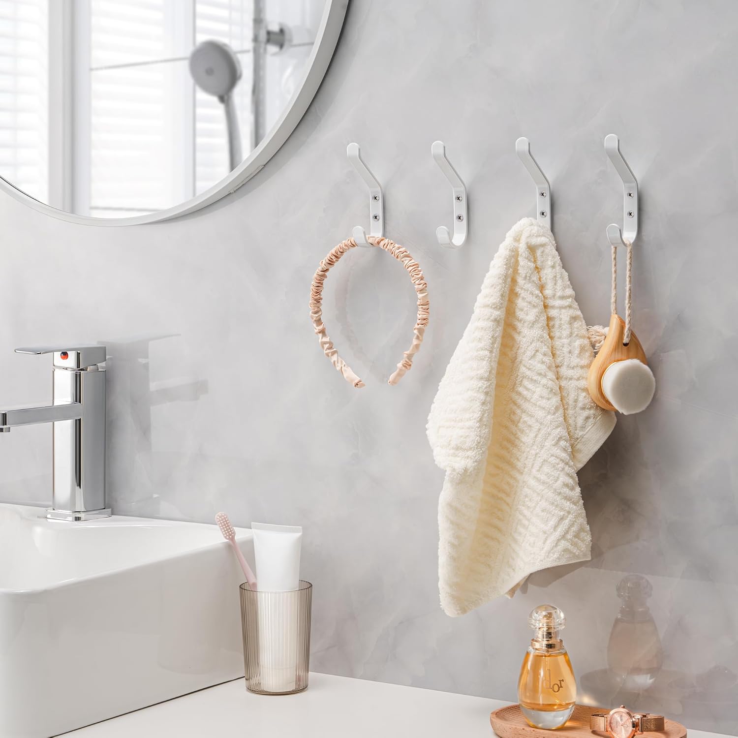 - 【Widely Use Utility Hooks】 It can be used in bathroom, living rooms, bedrooms, and kitchens to hang clothes, hats, towels, keys, and bath items.