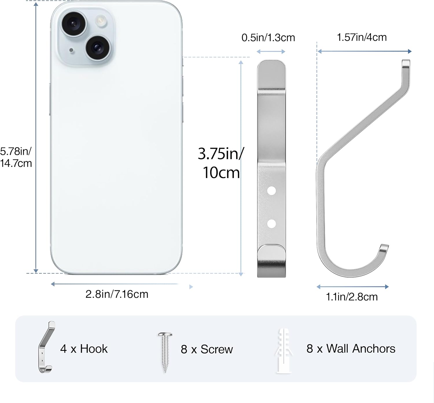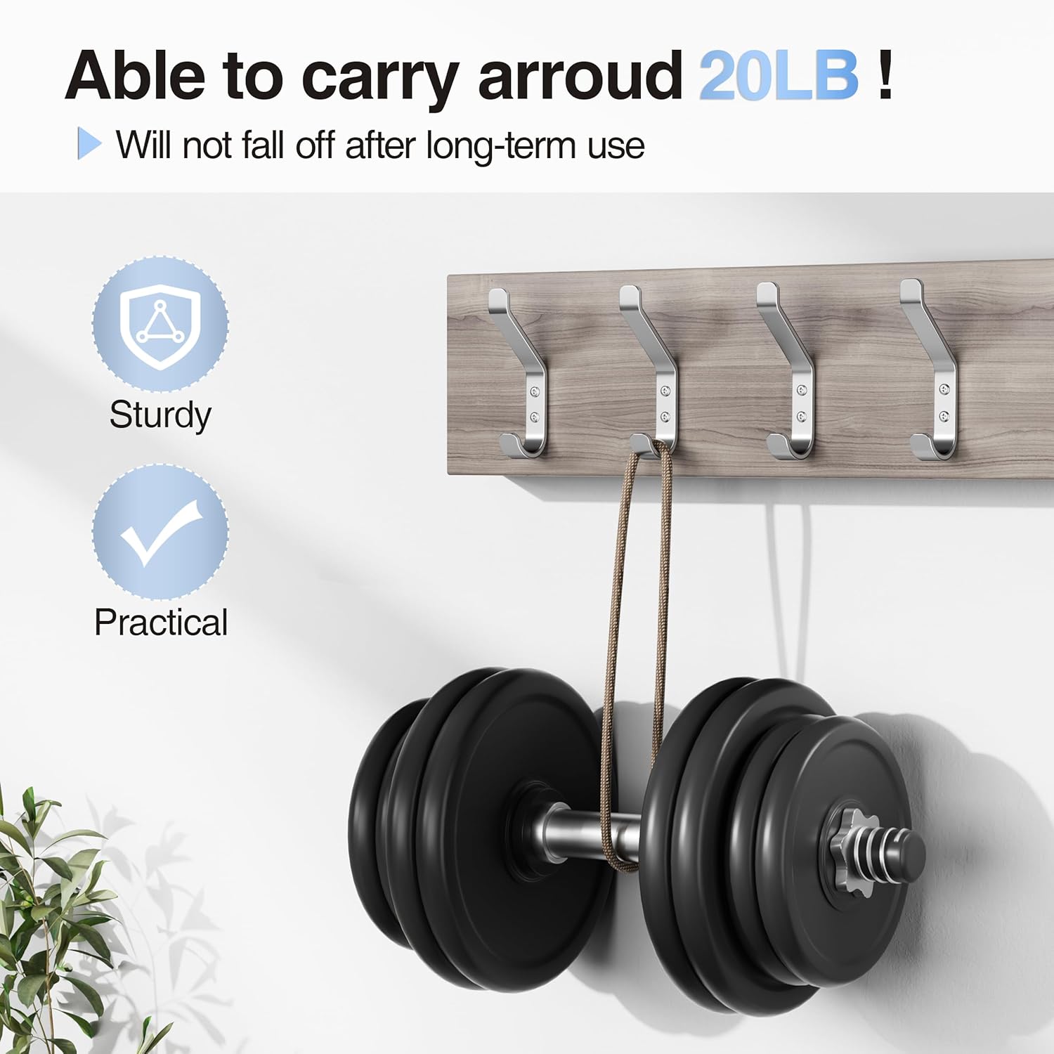 10-Pack Coat Hook for Hanging, 20LB (Max), Stainless Wall Hooks for Towel, Hat, Backpack, Key, Clothes, Wall Mounted Coat Hanger for Closet, Metal, Silver 3.75“
