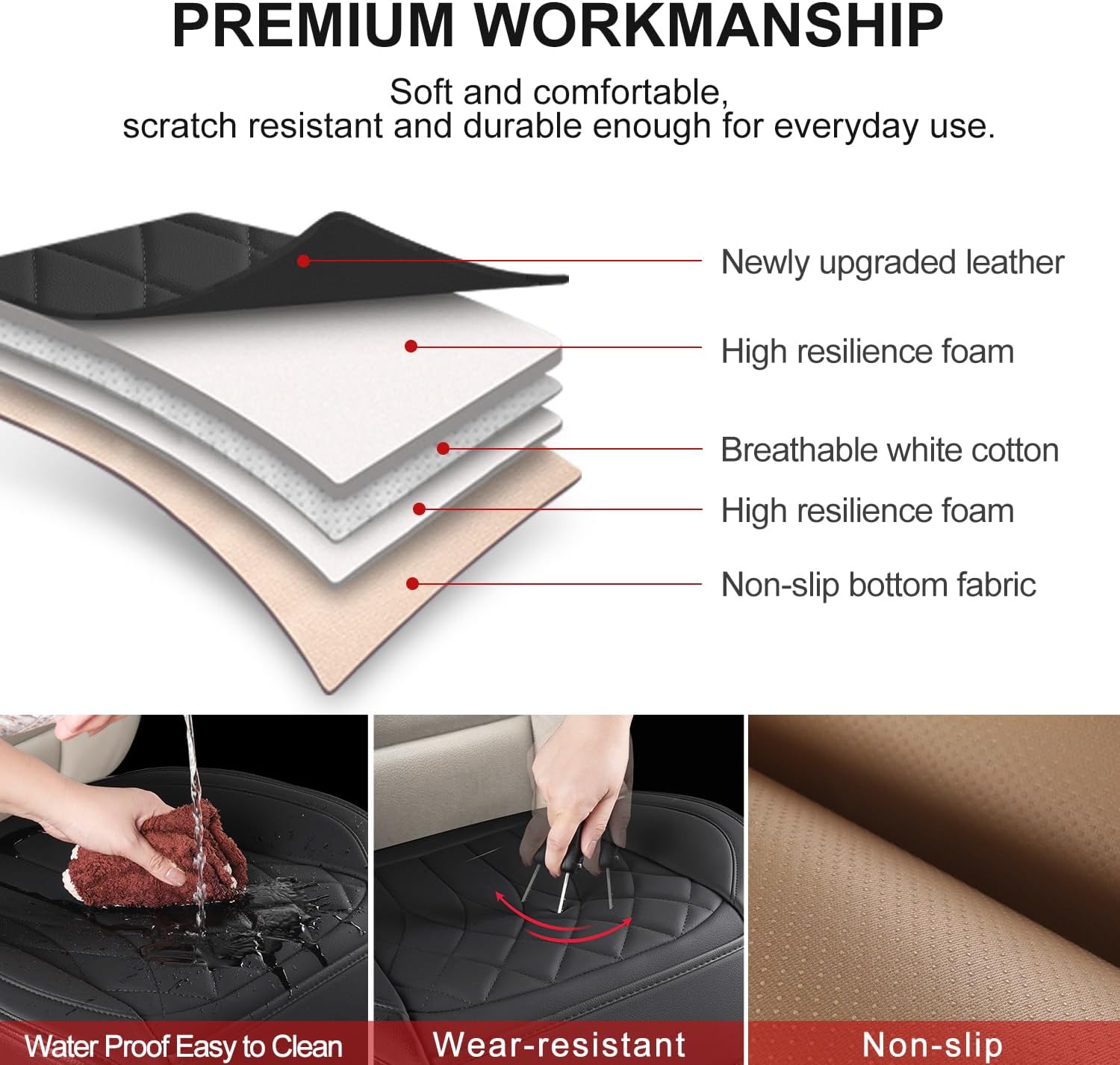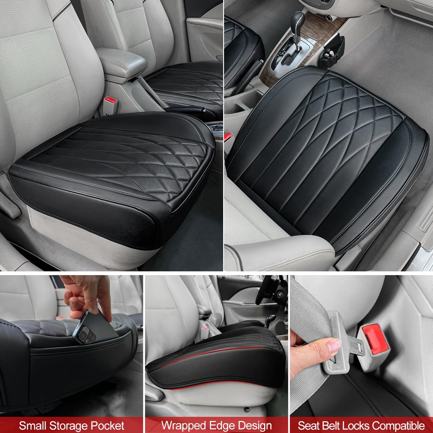 - PU Leather Soft & Durable: Our bottom seat covers for cars are made of soft PU leather, providing soft and durable protection for your car interior for long-term use. A built-in layer of elastic sponge provides maximum comfort for your hips during your driving. When the bottom car seat covers get dirty, just wipe them gently with a dry towel.