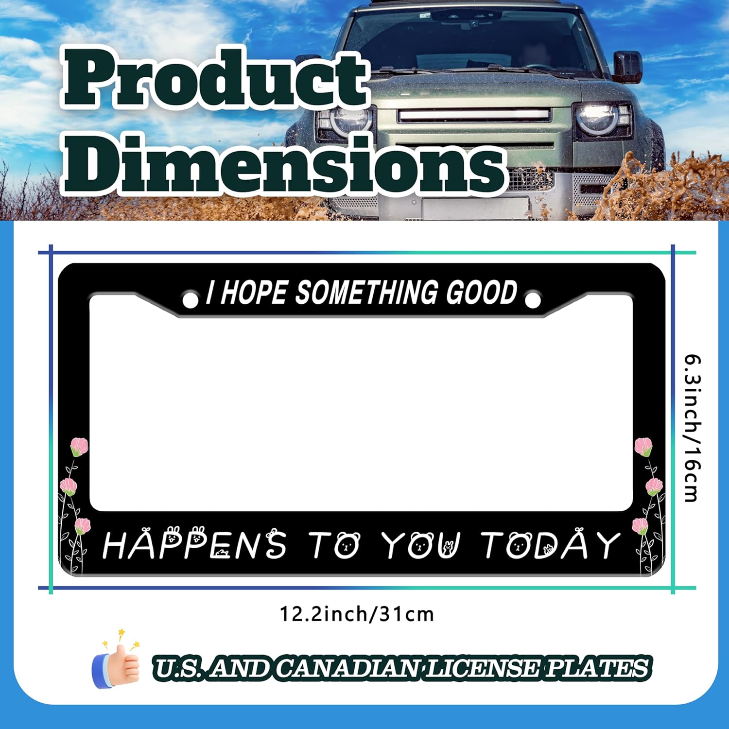 I Hope Something Good Happens to You Today License Plate Frame Funny License Plate Holder for Front or Rear Car Tags Durable Stainless Steel Car Decoration with Screws 6.3 X 12.2 Inch for Men Women