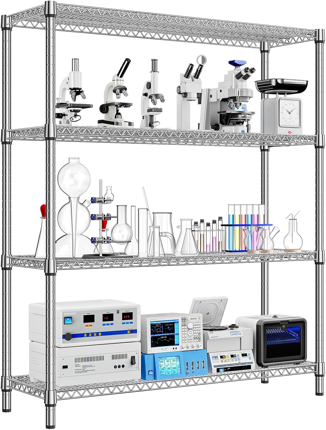 1760 LBs 4 Tier Storage Rack Metal Wire Shelving Unit, Storage Standing Shelf Organizer for Laundry Bathroom Kitchen Pantry Garage Utility Room, Chrome 17.7" D x 59.1" W x 70.4" H