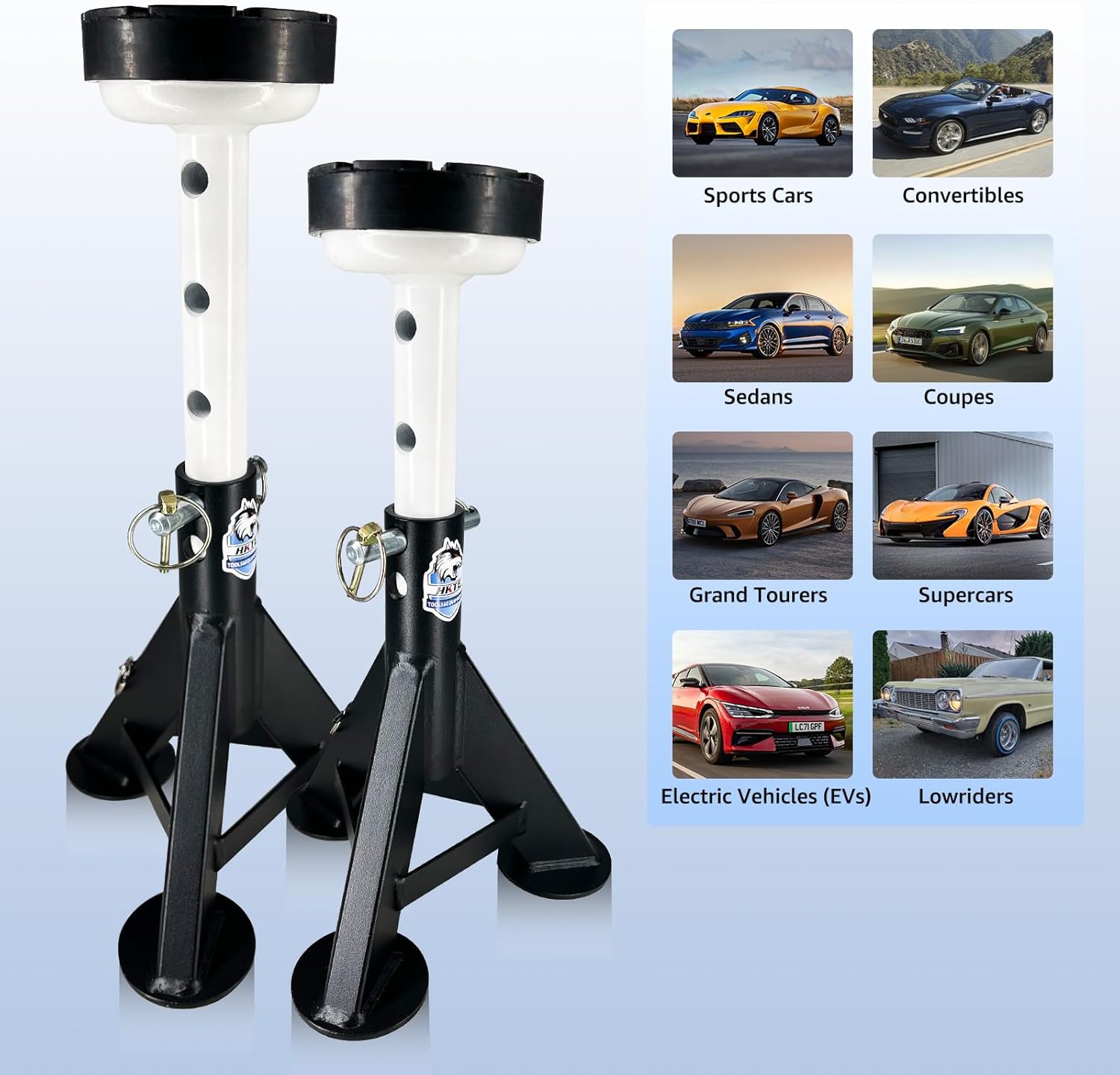 - Secure and Reliable: HKTE Jack Stands, with a focus on strength and heavy-duty construction, deliver a secure and reliable support platform for confident work beneath the vehicle.