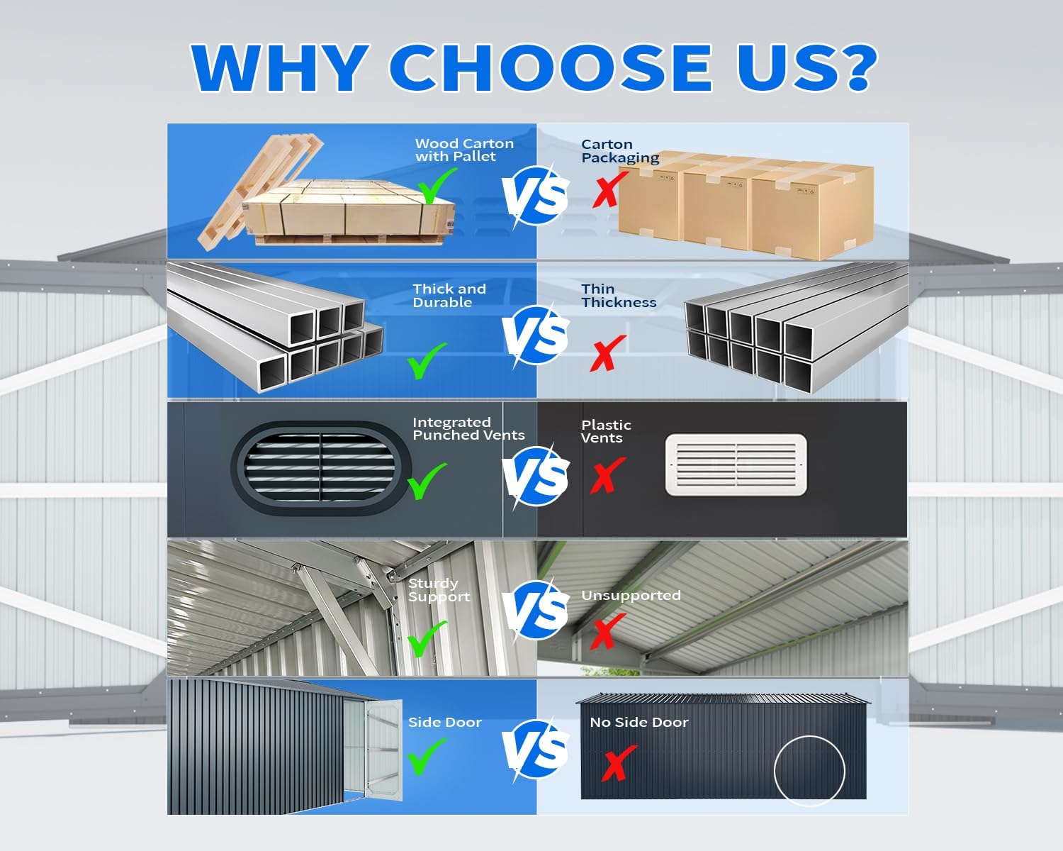 - ๐ฏ100% ๐ช๐๐๐๐๐๐๐ ๐บ๐๐๐๐๐๐๐๐๐๐๐: Rest assured with our 12-month warranty and 30-day return or replacement policy. We prioritize protecting your rights and interests, so please don't hesitate to contact us with any questions about our metal buildings and sheds. We're dedicated to resolving your concerns promptly, typically within 24 hours.