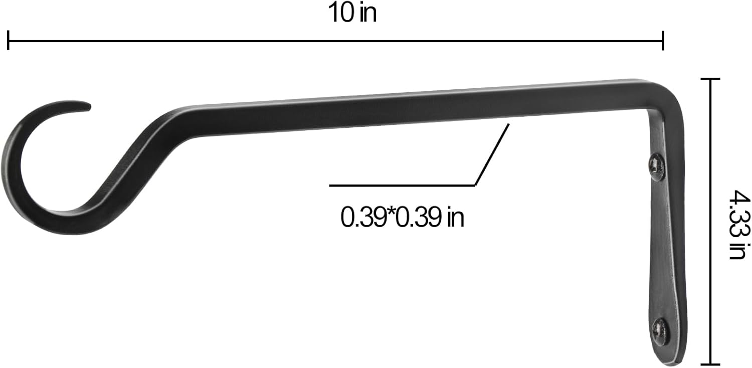 10 inch Plant Hanger, Sturdy Hanging Plant Bracket Outdoor, Hanging Plant Wall Hook Heavy Duty, for Hanging Bird Feeders, Planters, Lanterns, Wind Chimes, Indoor/Outdoor Use, Black, Set of 2