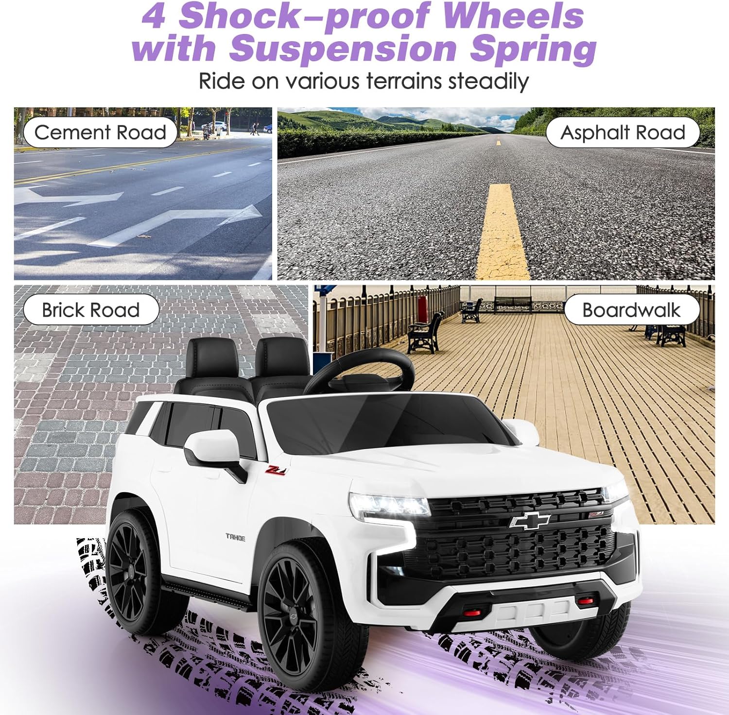 - 【Great Safety Assurance】: The soft start function effectively avoids kids being frighted by abrupt accelerating. Plus, the spring suspension reduces bumps impact, and the 4 wear-resistant wheels are suitable for various terrains like cement road and asphalt road. The dual openable and lockable doors ensure easy get in and out.