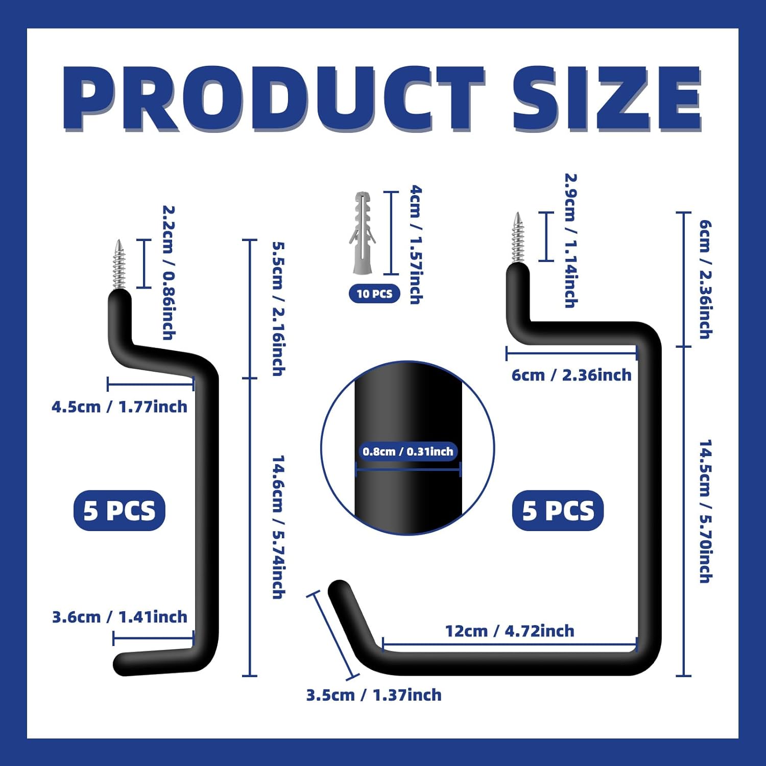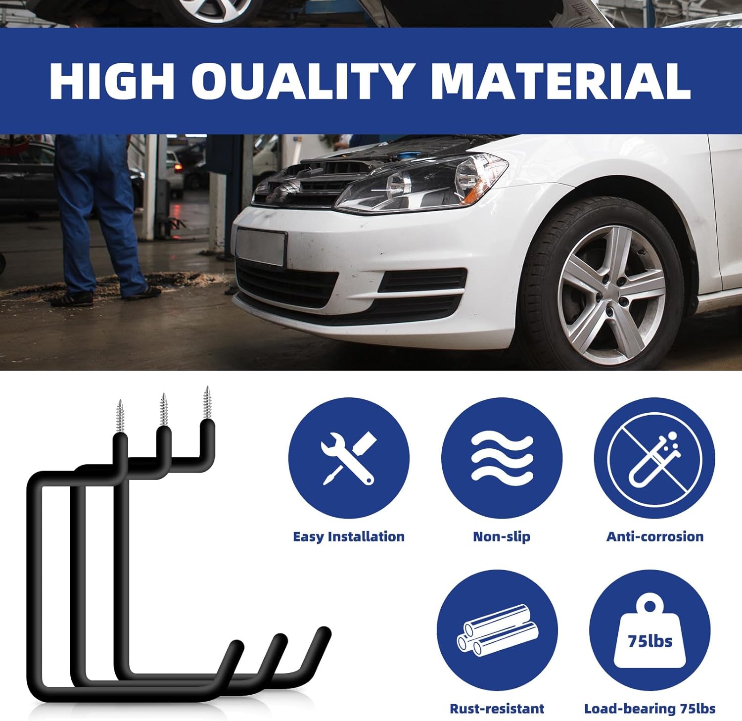 - HIGH QUALITY: Our garage hooks are made of high quality stainless steel material, which is strong and durable in load bearing capacity and prevents any bending or deformation.