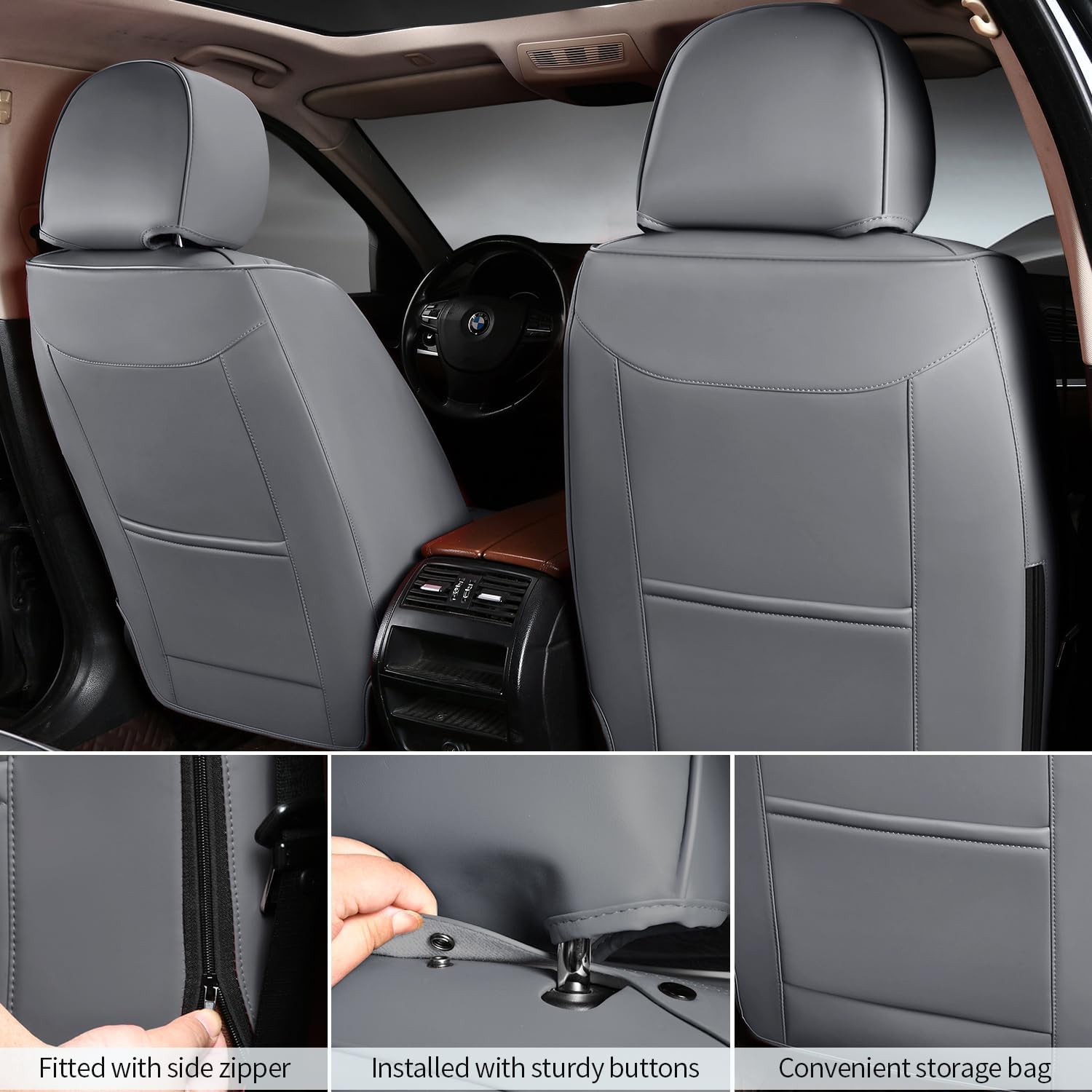 - EASY INSTALLATION: Car seat covers front seats comes with two front seat covers and two removable headrests, comes with chucks and hooks for easy installation and fixing.