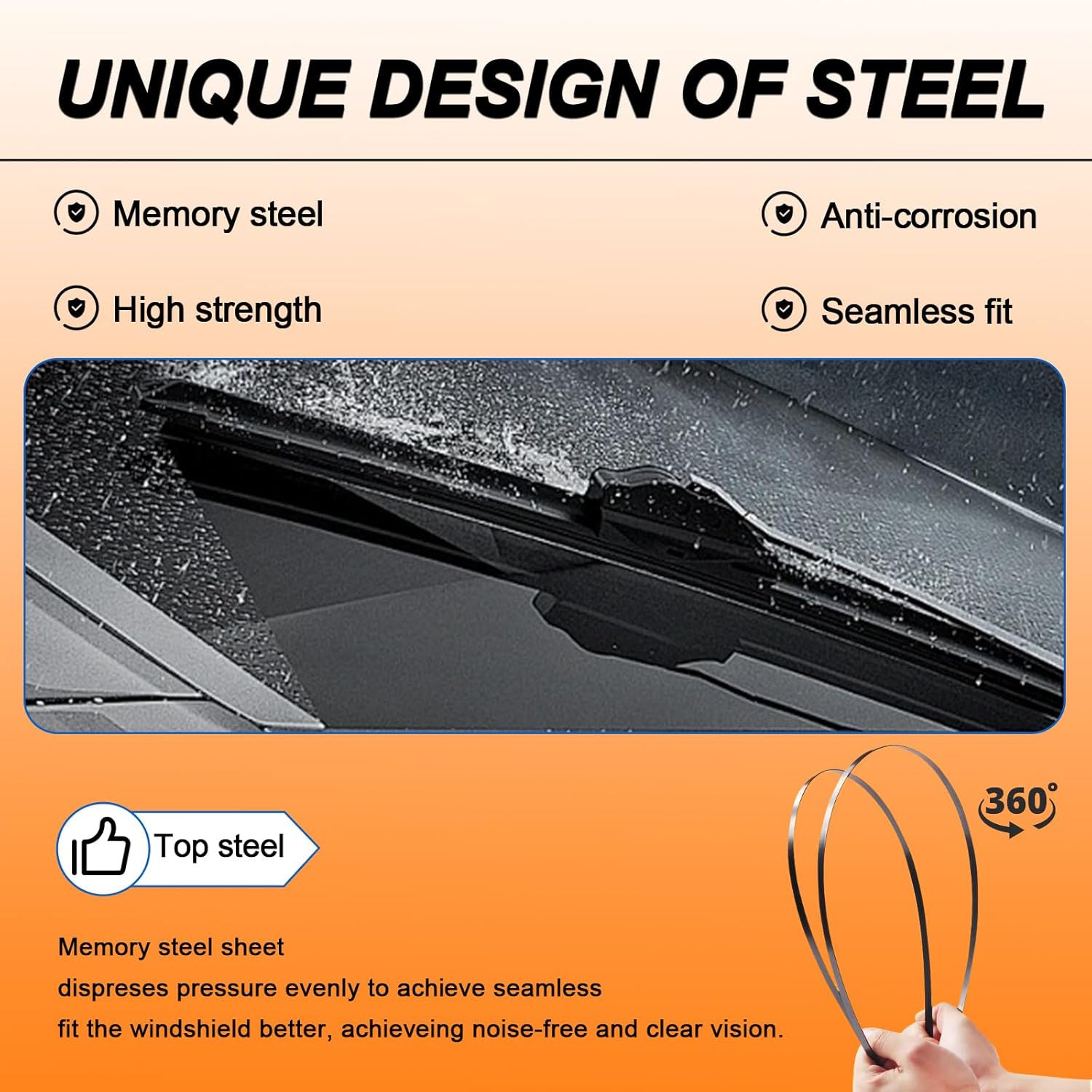 - 【Dual Steel Springs】Galvanized memory metal shrapnel, 2,000 force points to make the wiper fit seamlessly into the windshield.