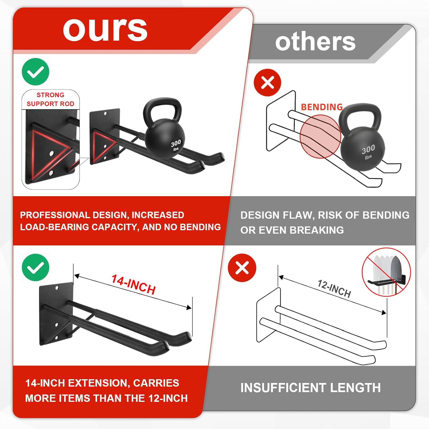 - [ππ-ππππ ππππππ πππππ ππππ πππππππ RODS]: The extra-long garage wall hooks can hold more and larger objects. garage hooks heavy duty have added support rods for stronger load-bearing capacity