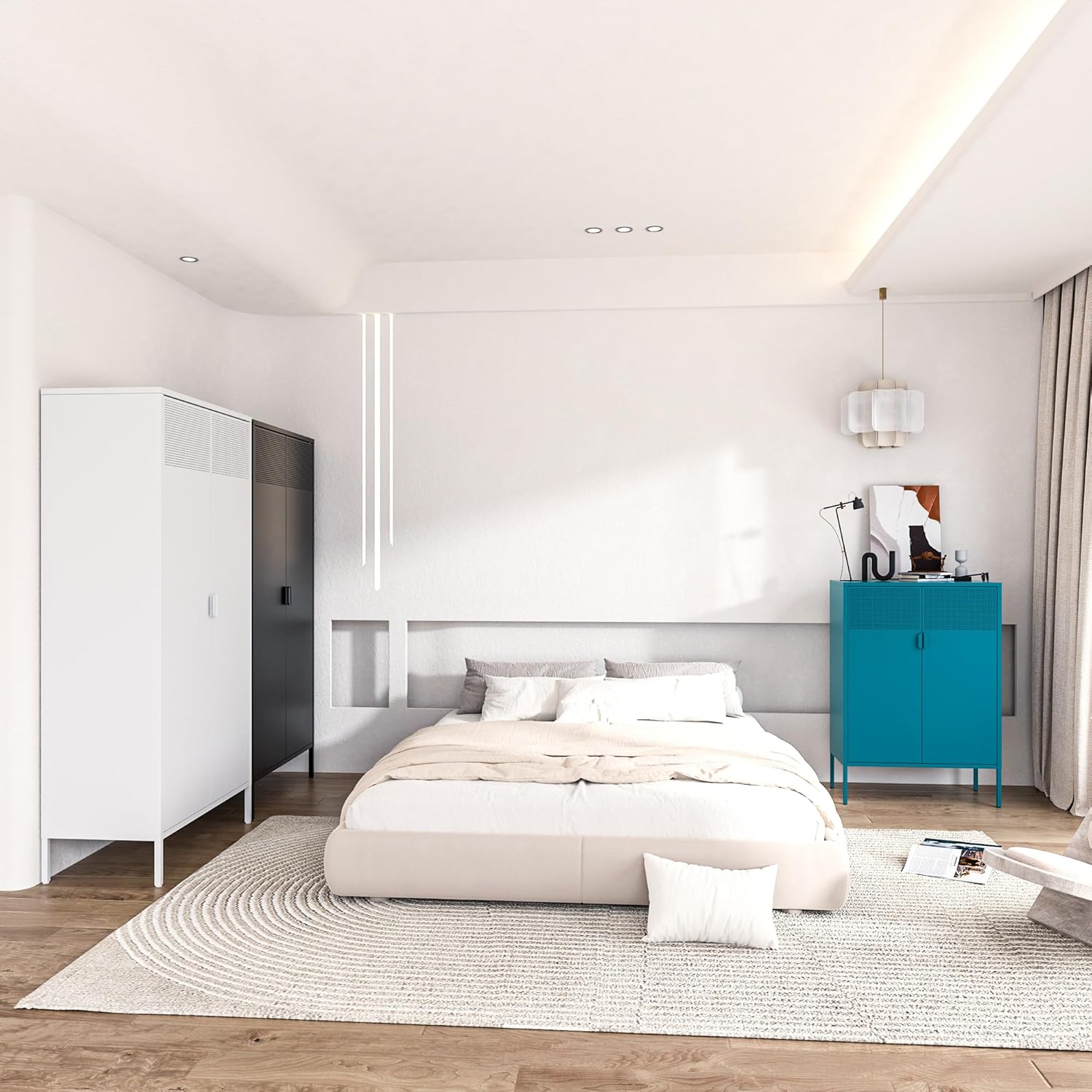 - Steel Construction: Crafted from durable alloy steel with a powder-coated white finish, this metal storage cabinet offers long-lasting durability for daily use at home or in the office.