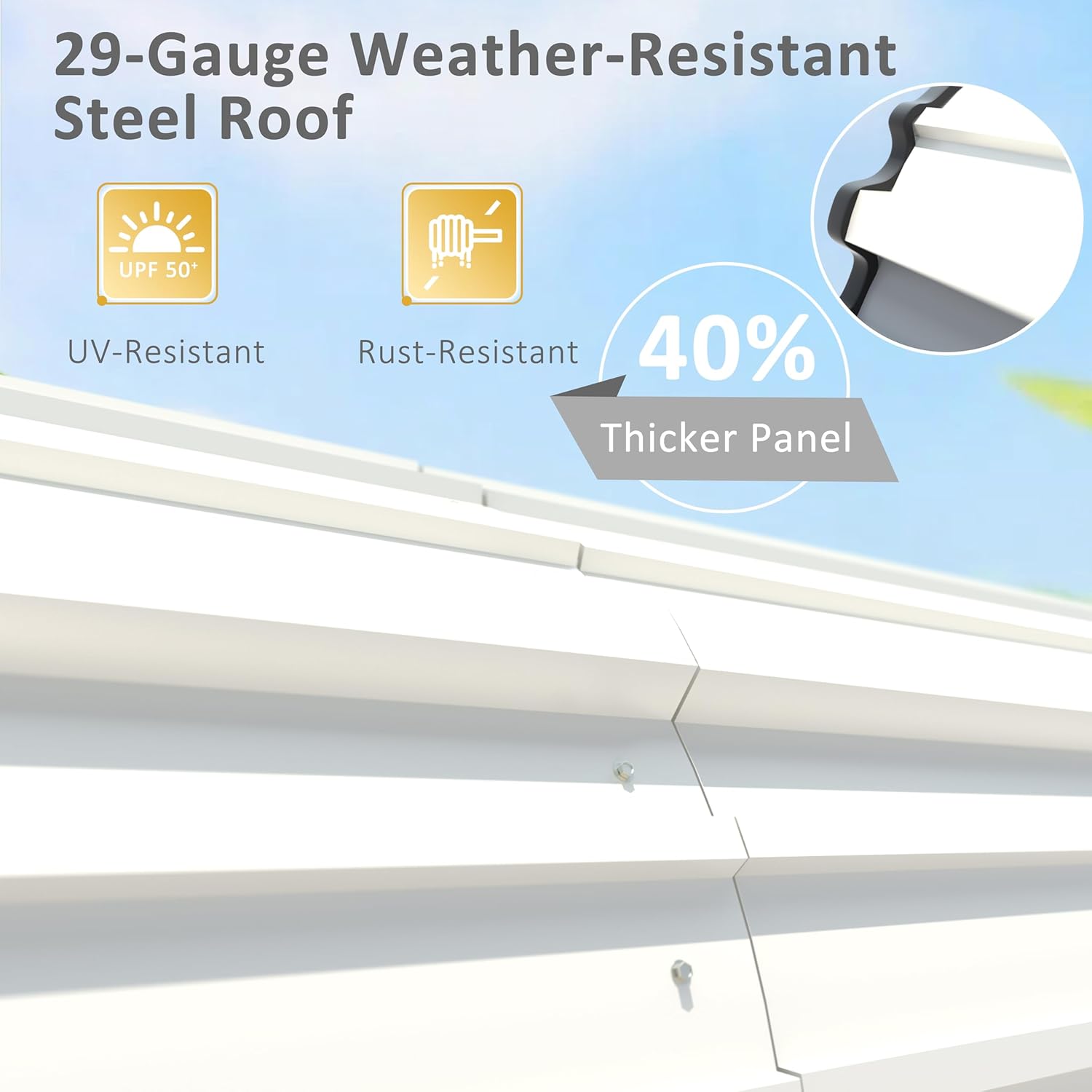 - Heavy Duty Metal Carport: Our outdoor carport features steel roof to withstand any weather which is better than traditional PE cover. The roof is made of 29 gauge thickness steel panels which makes it weatherproof and rust resistant. The frame is made of 2" x2"15 gauge thickness steel tube which is anti corrosion and study for premium snow load and wind rating