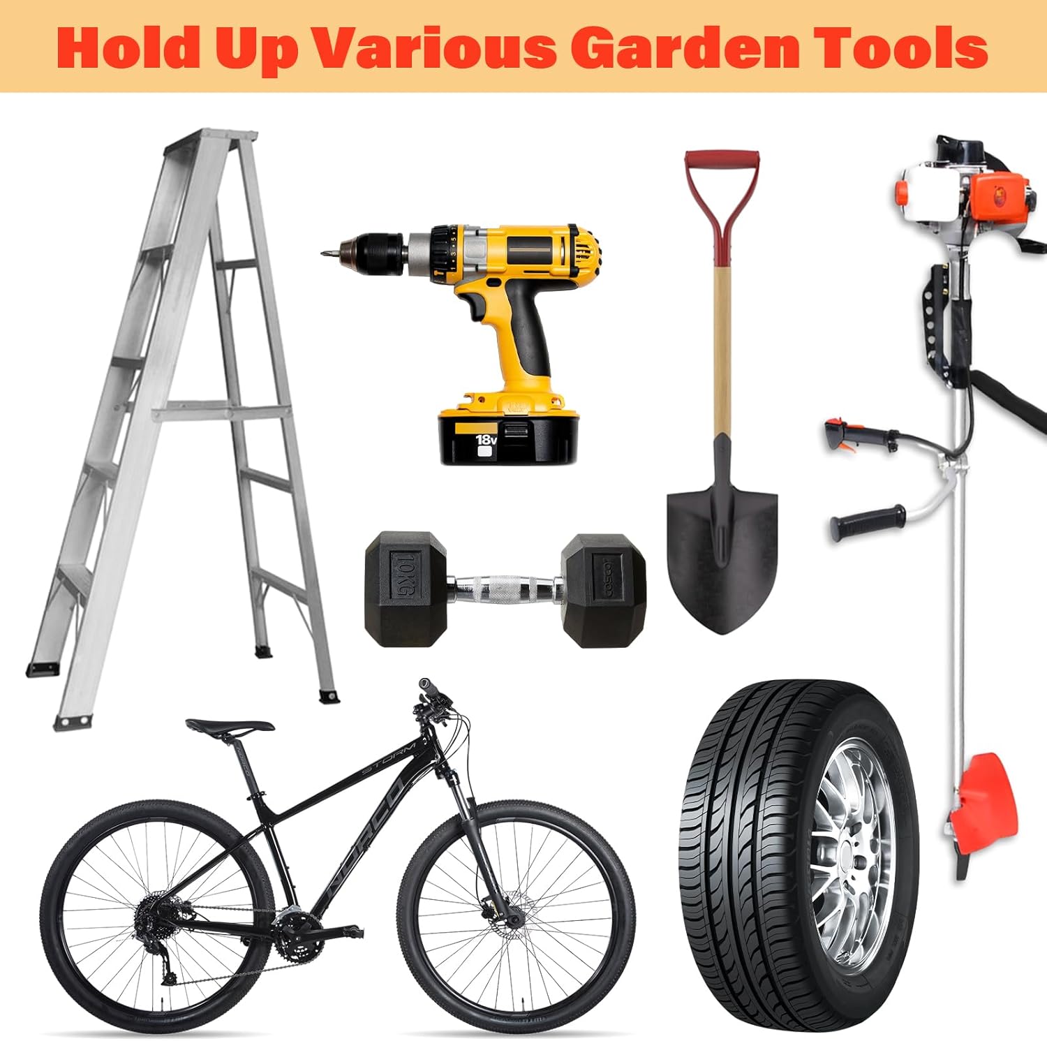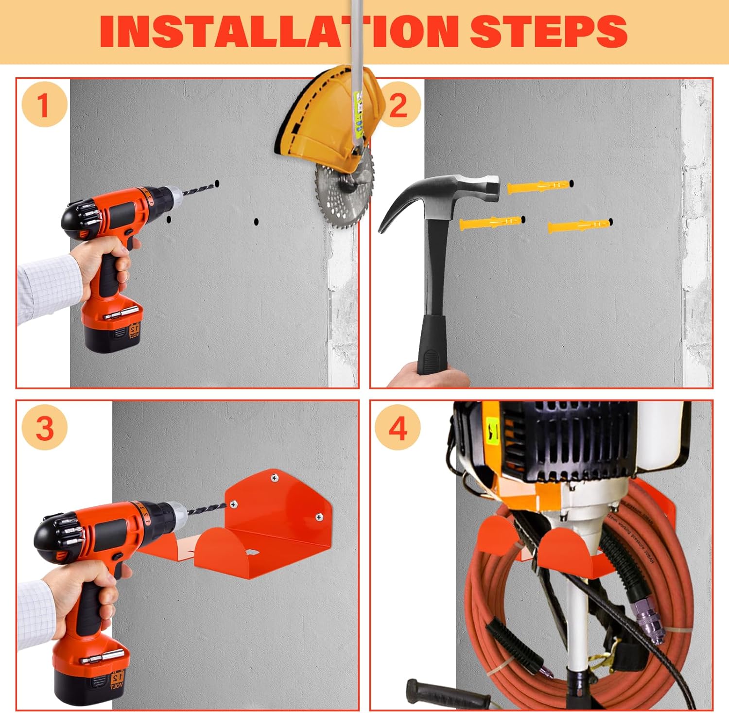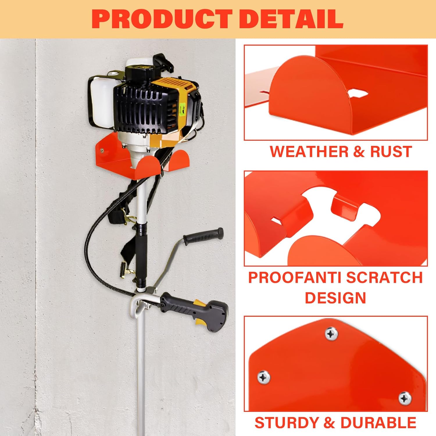 - Sturdy Construction: Made of thickened stainless steel, these trimmer rack are strong with high bearing capacity. The orange-painted surface offers waterproof and anti-rust protection, and resists chipping. Smooth edges keep hands and tools safe.