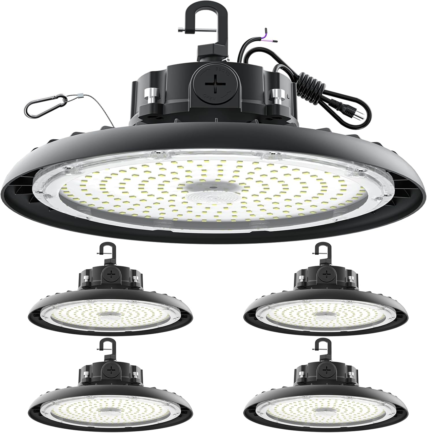 High Bay Lights LED UFO Light 240W LED Shop Lights 6000K IP65 Commercial Bay Lighting Fixture 43200 LM Super Bright, 5ft Cable Plug & Play for Warehouse Factory Garage Workshop Barn 4 Pack