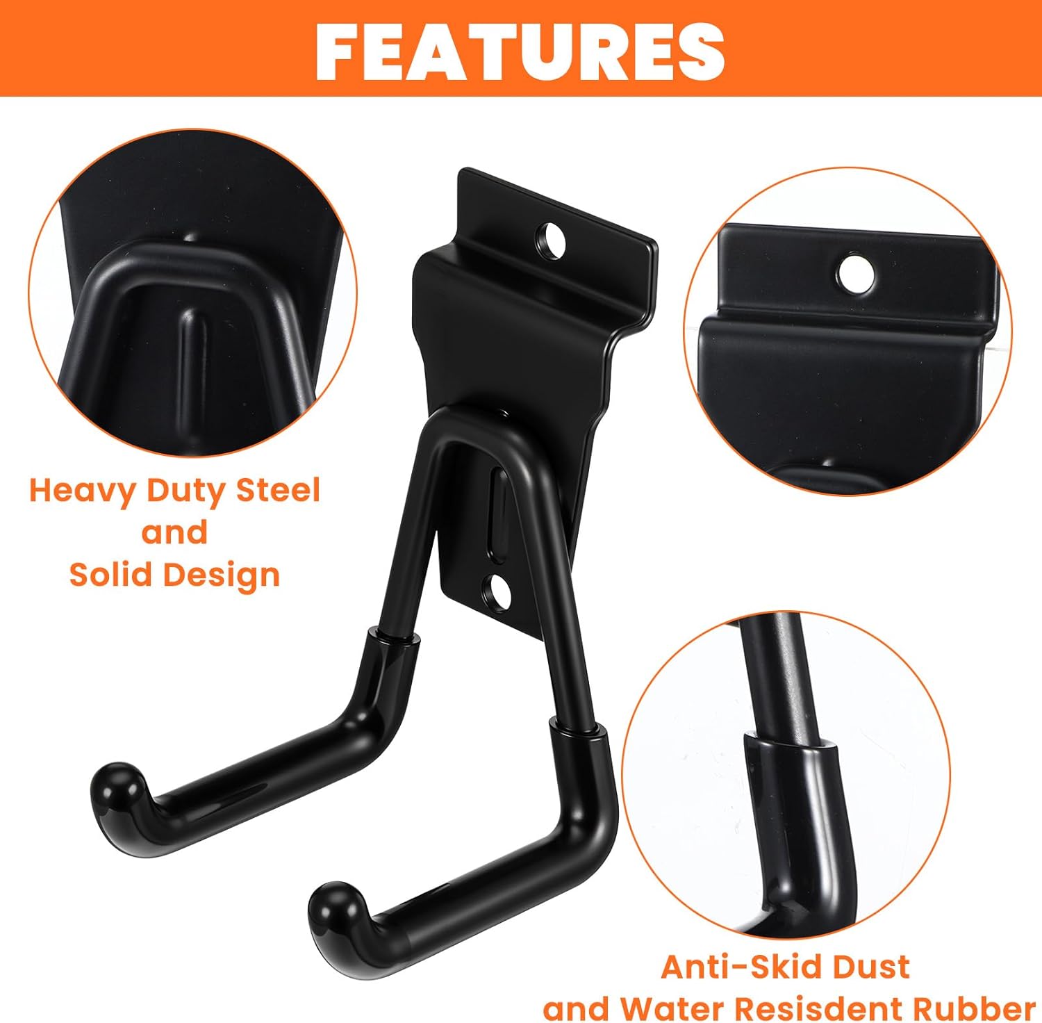 - Anti-Skid, Dust and Water Resisdent Rubber:Cushioned rubber coating makes hooks durable. The material protects items being hung and never falling down, also protect any surface that might need protection from marring or scratching.