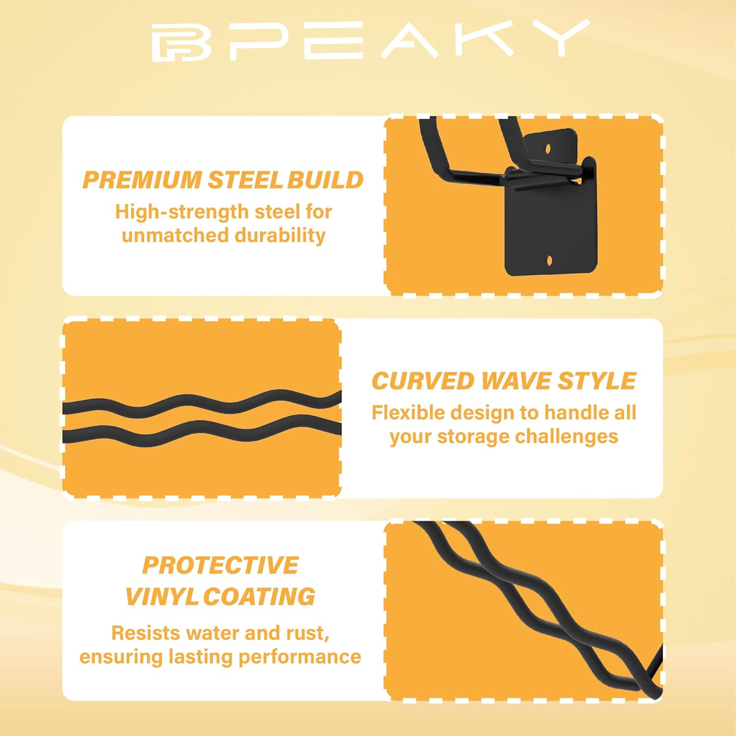 - Wave-Shaped Stability: The 12-inch garage hooks with a wave design provide superior stability, preventing tools from slipping. BFPeaky large garage hooks are perfect for hanging multiple items securely.