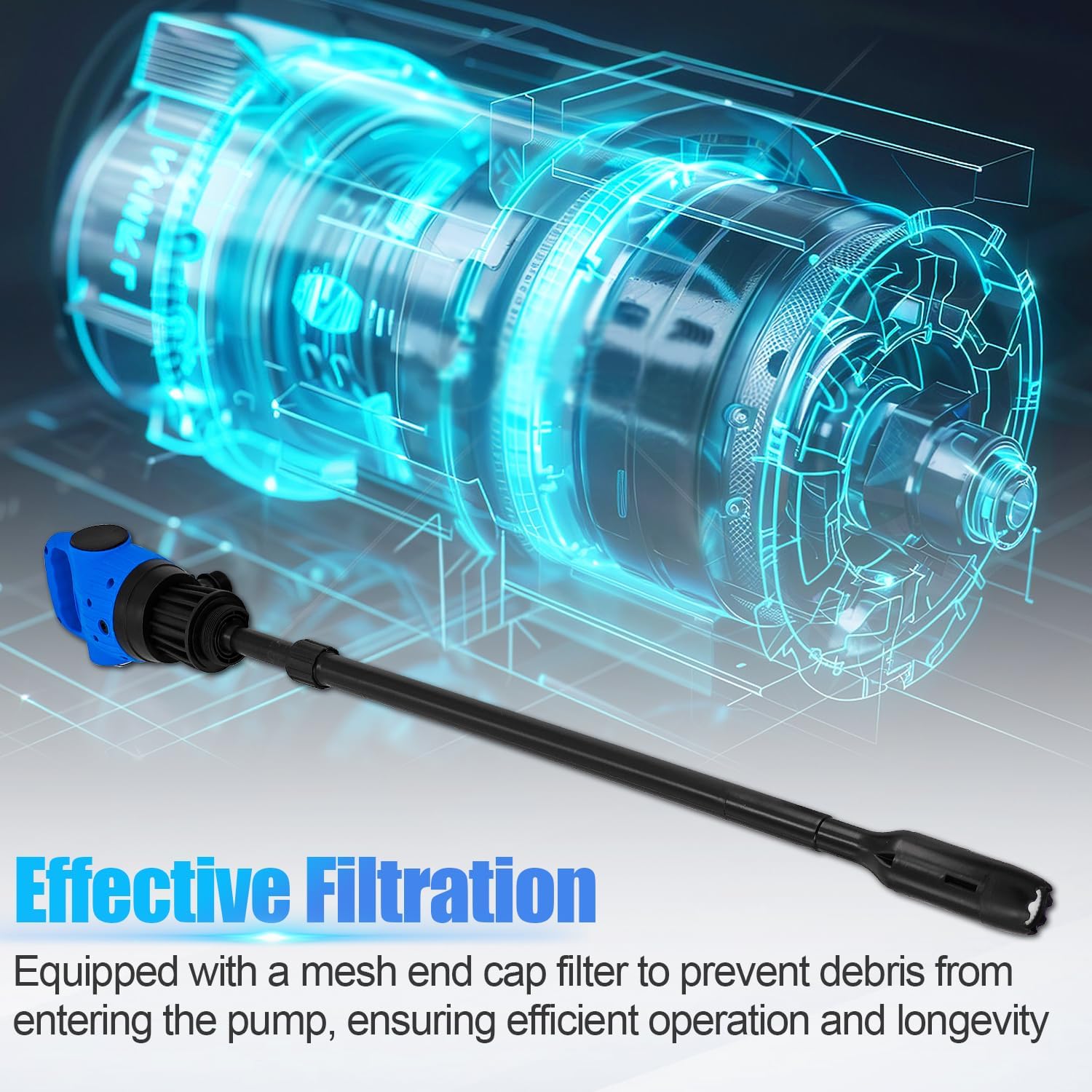 - [Effective Filtration]: Equipped with a mesh end cap filter to prevent debris from entering the pump, ensuring efficient operation and longevity