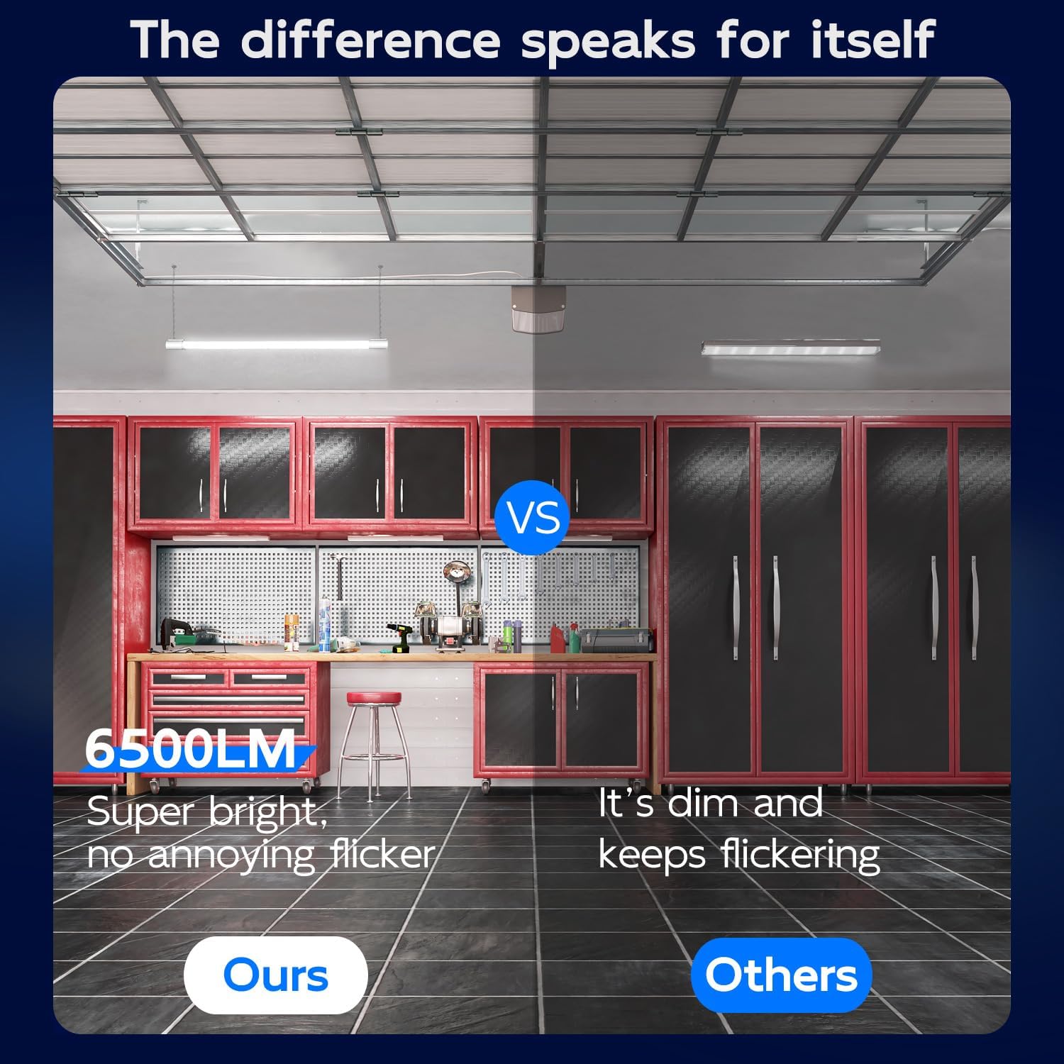 - โ Super Bright - 4FT led shop lights feature 6500 lumens brightness at 5000K Daylight White by using only 60W. That is a staggering LED Efficiency of 108 lm/w! Excellent replacement of conventional fluorescent fixture. Energy Savings of up to 75%.
