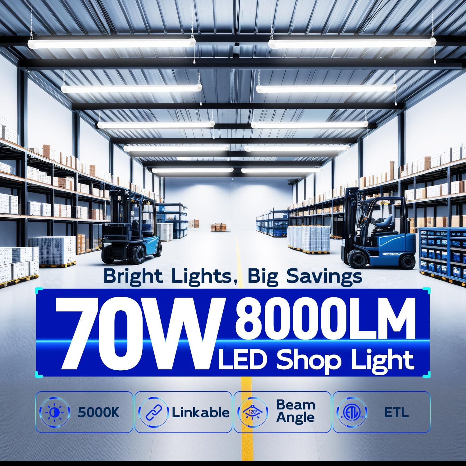 - β High Quality - ETL certified for better quality, safety and reliability. Turns on instantaneously, no more waiting. This long-lasting LED shop light provides up to 50,000 hours of light before any maintenance is required.