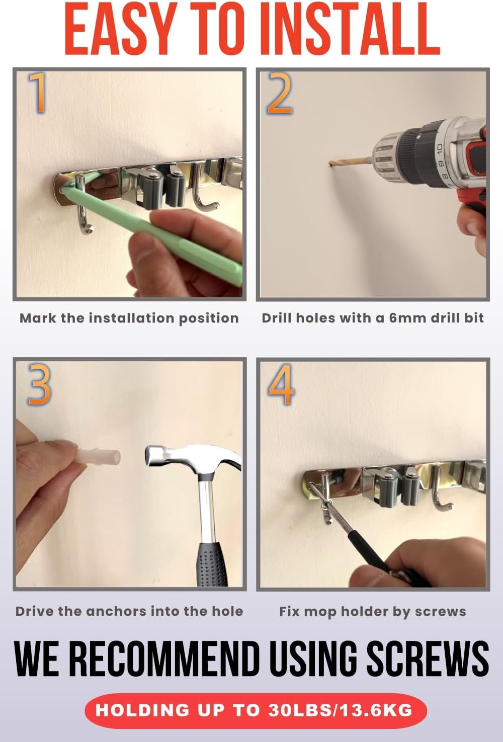 - DUAL PACK: Set of 2 wall-mounted broom and mop holders, perfect for organizing cleaning tools and maximizing storage space in any room