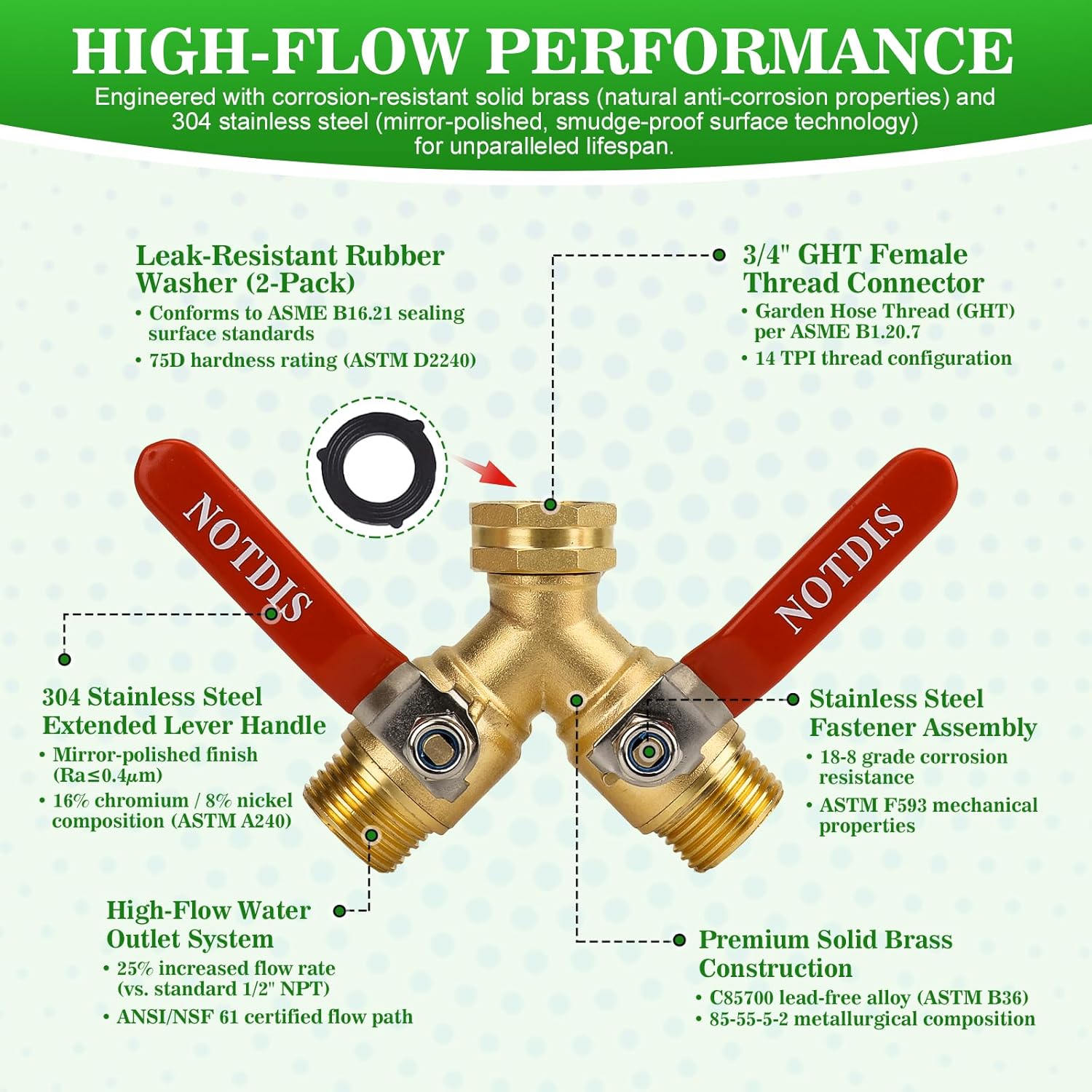 - Upgraded Durability: Made of high-quality solid brass and 304 stainless steel, ensuring rust and corrosion resistance for long-lasting use.