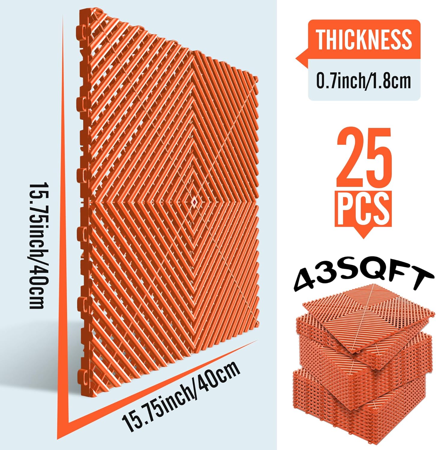 15.7"x15.7" Garage Flooring Tiles, Non-Slip Interlocking Plastic Garage Floor Mat, Garage Organization & Garage Storage, Vented Pattern (Orange, 25PCS)