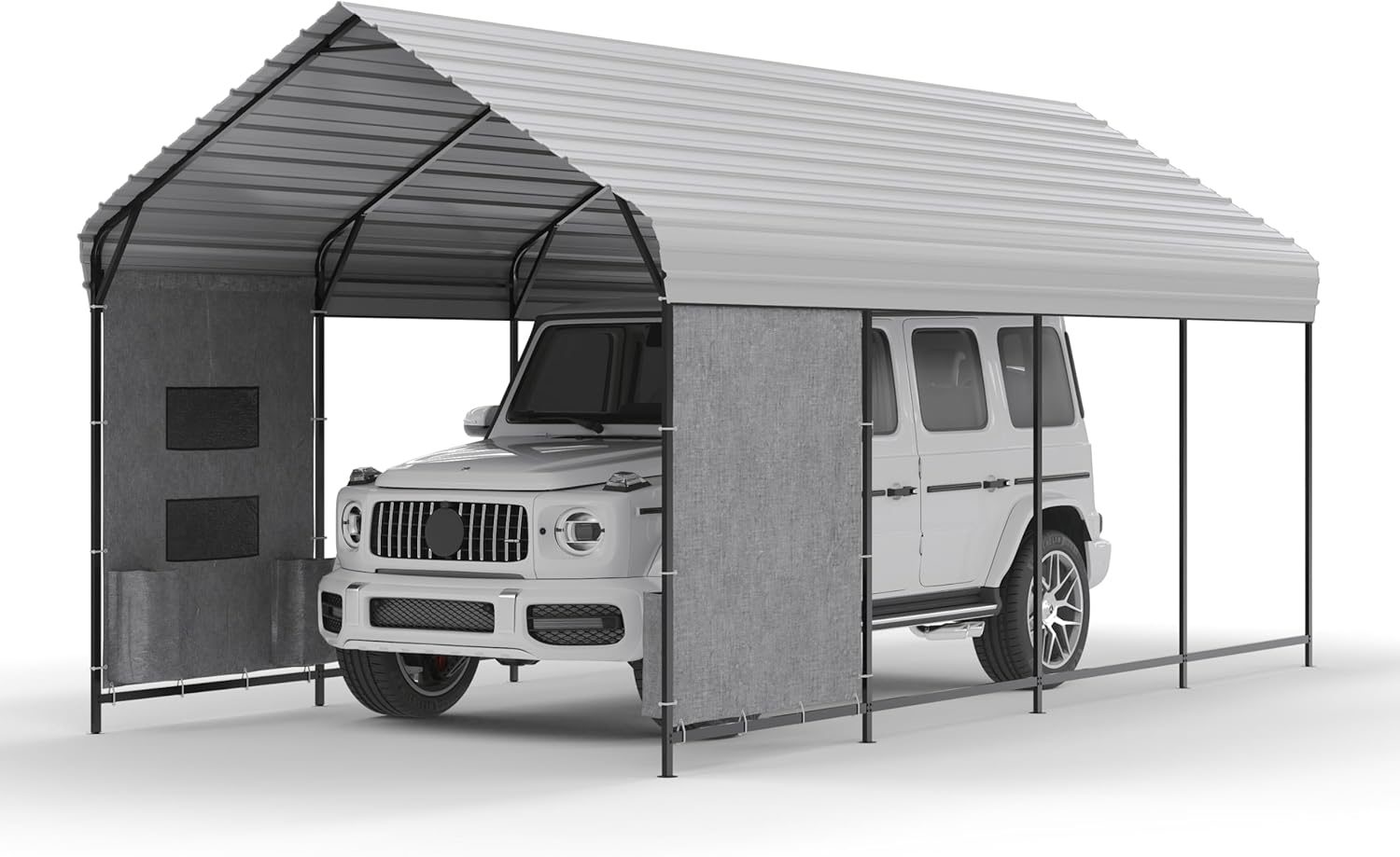 - Convenient Storage Pocket: Keep your tools handy with the included 2 PVC fabric side pocket. Easily attachable to any side of the metal carport frame with elastic buckles, it provides convenient extra storage right where you need it
