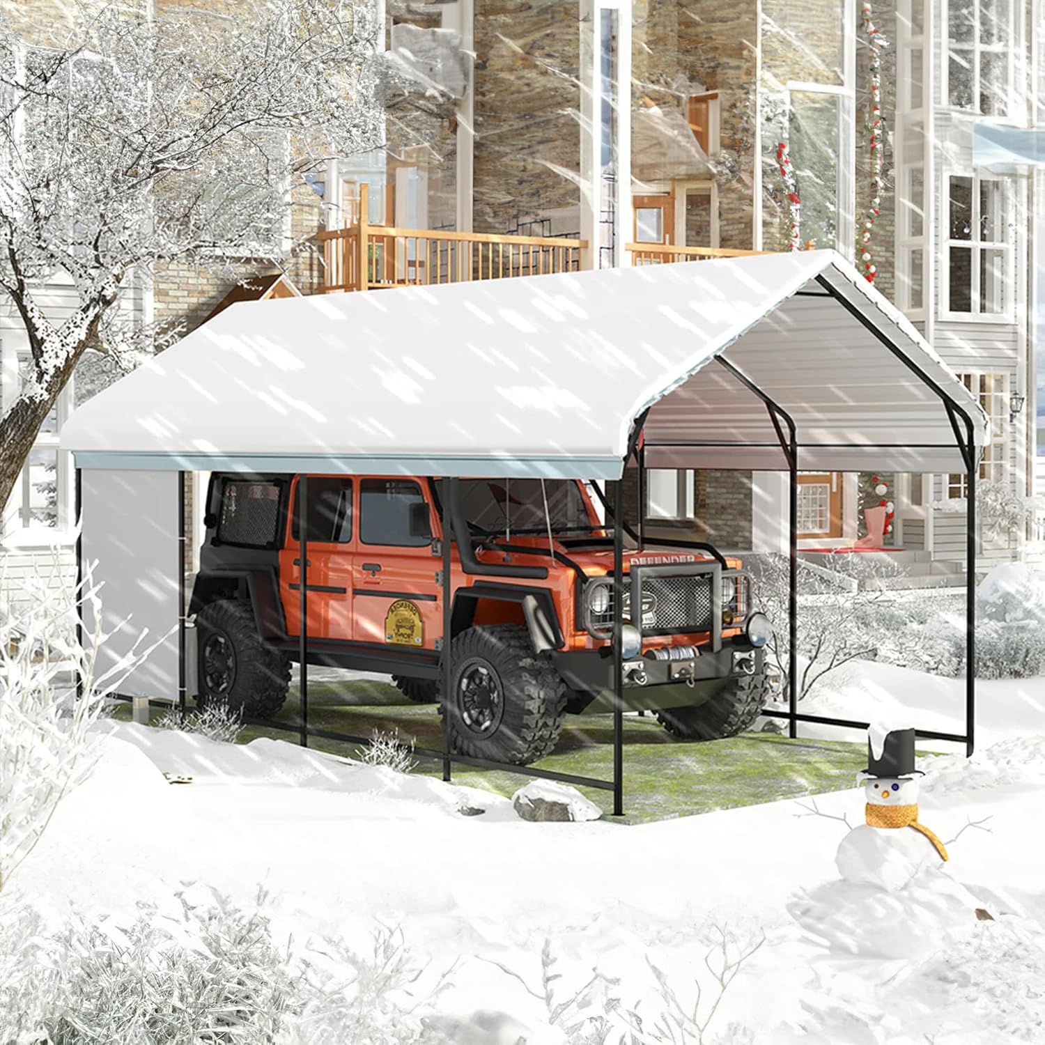 - Heavy-Duty Metal Carport: Unlike flimsy cloth-covered options, this car port features a robust steel frame and metal roof, 50% heavier than products on the market, built to withstand extreme weather—keeping your car safe in any condition