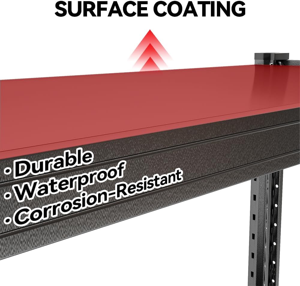 - 【Extra Wide Design】 This garage shelving unit measures 51.2"W x 23.6"D x 47.2"H, providing an excellent storage solution suitable for various heavy items, helping you utilize space efficiently.