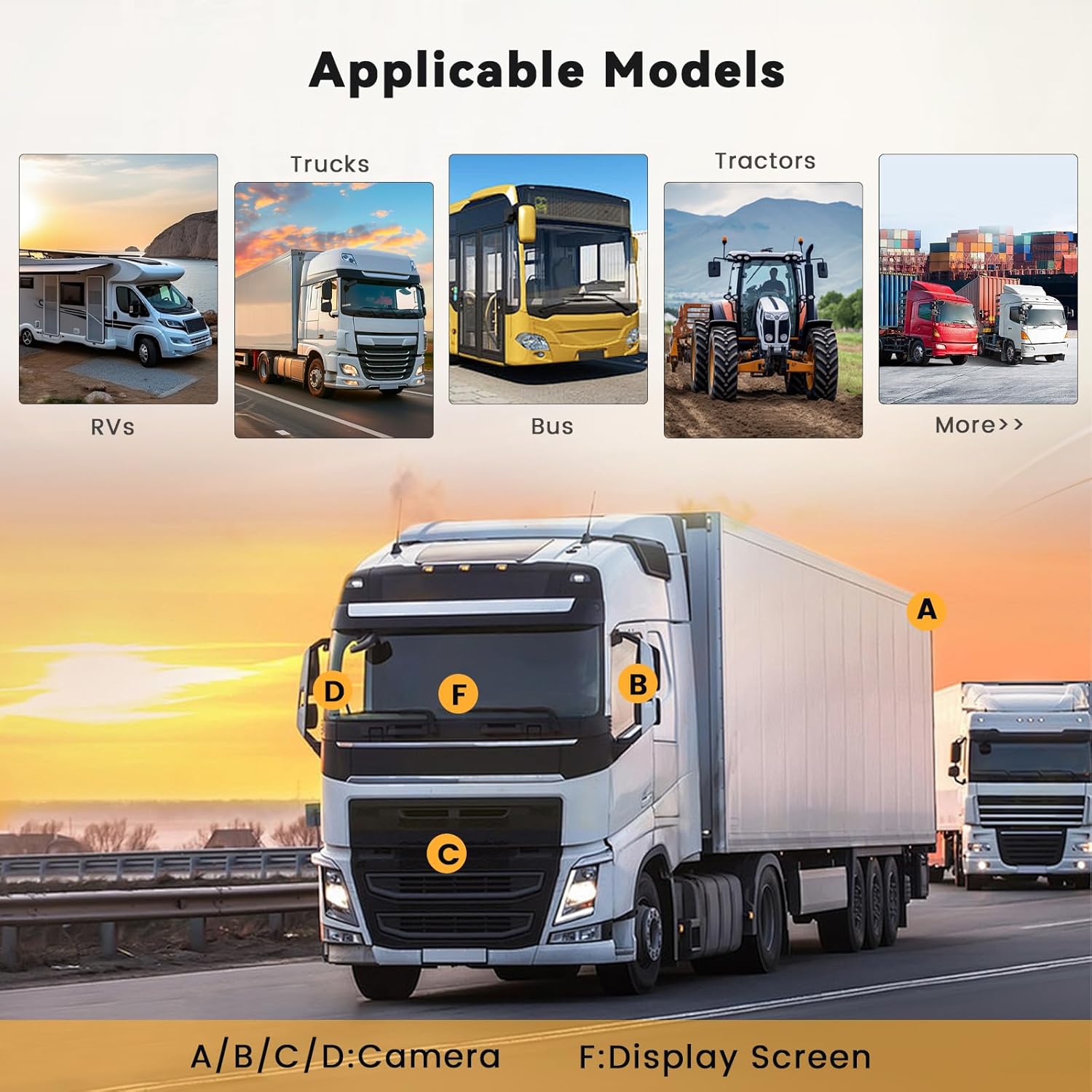 - Compatible Devices : Monitor, Truck, Bus, RV, Tractor, Car and ect