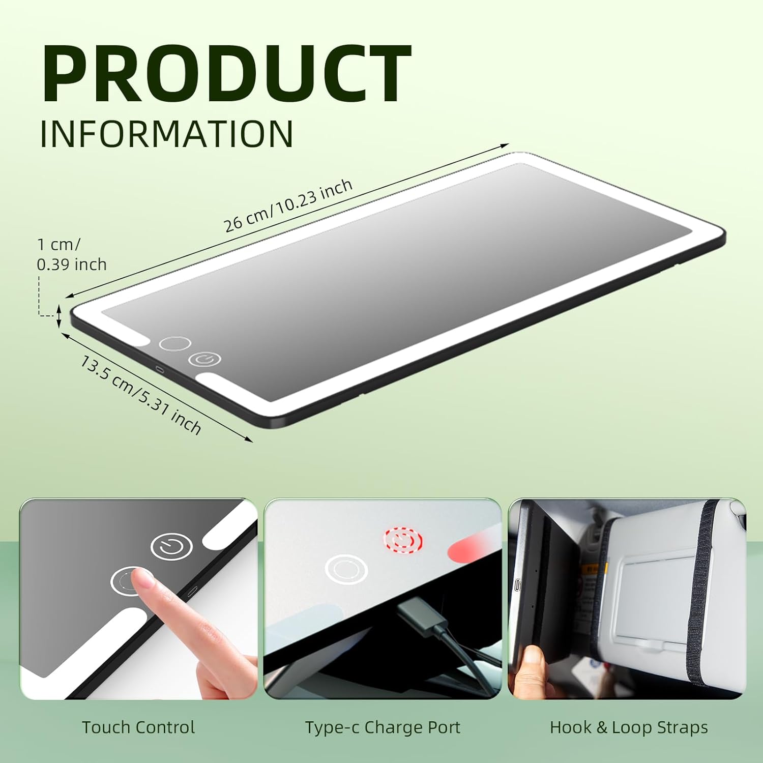 - ăVersatile Lighting Optionsă With a simple short press of the touch-sensitive switch, you can seamlessly switch between three light colors: crisp cold light, natural daylight, and soft warm light. This allows you to choose the lighting that best suits your needs, whether you're applying makeup in bright sunlight or dim evening conditions. For even more tailored brightness, simply long press the switch to adjust the intensity according to different environmental needs. This offers ultimate versatility, ensuring that you always have the perfect lighting for your beauty routine.
