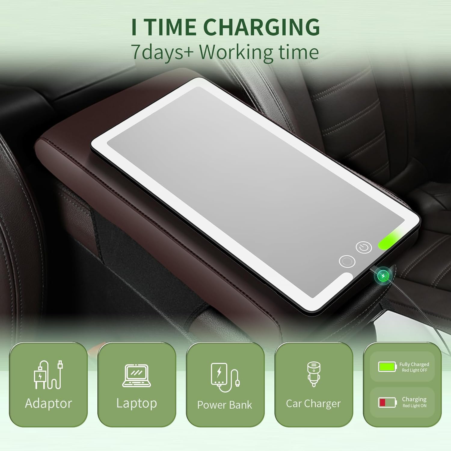 - ăConvenient and Portable Chargingă Equipped with a robust built-in 1500mAh lithium battery, the mirror can be charged via a variety of convenient methods, including your car's cigarette lighter socket, a standard household socket, a computer USB port, or even a portable mobile power supply. This means you can use the car beauty mirror freely anytime, anywhere, without being tethered to a power outlet. The battery offers extended usage time on a single charge, ensuring that you're always ready for your next beauty session.