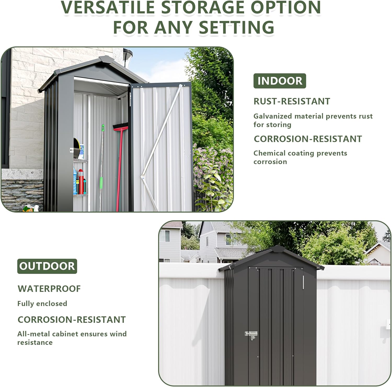 - ๐ก๐๐ฅ๐ฅ-๐ฐ๐๐๐ญ๐ก๐๐ซ ๐๐ญ๐จ๐ซ๐๐ ๐ ๐๐ก๐๐: This small outdoor storage shed 2.5x1.4 is crafted from high-quality galvanized steel, offering excellent rust resistance and stability. Even when exposed to prolonged sun and rain, it maintains a like-new appearance and outlasts ordinary outdoor storage cabinet. Its unique waterproof design lets you safely store office supplies, cleaning tools, and outdoor equipment without worry of moisture or damage
