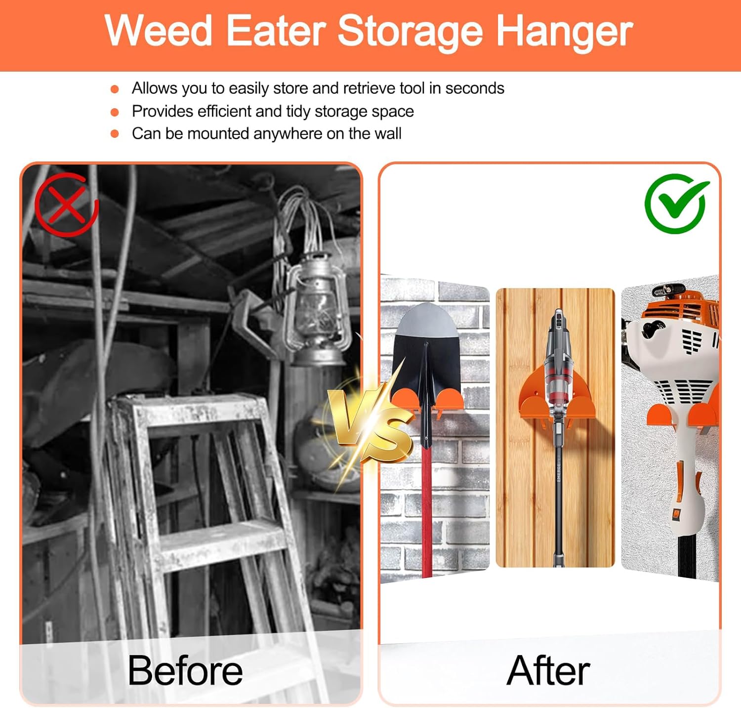 2 Pack Garage Organizer Trimmer Rack, Heavy-Duty Wall Mount Hanger for Grass Trimmer, Weed Eater & Power Tools
