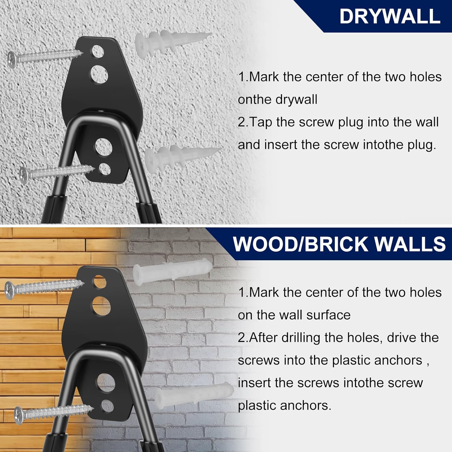 - Easy Installation: Comes with multiple screws and expansion anchors, suitable for different wall types such as drywall, wood, brick, and concrete. Only common tools like a drill, hammer, and screwdriver are needed for quick installation.