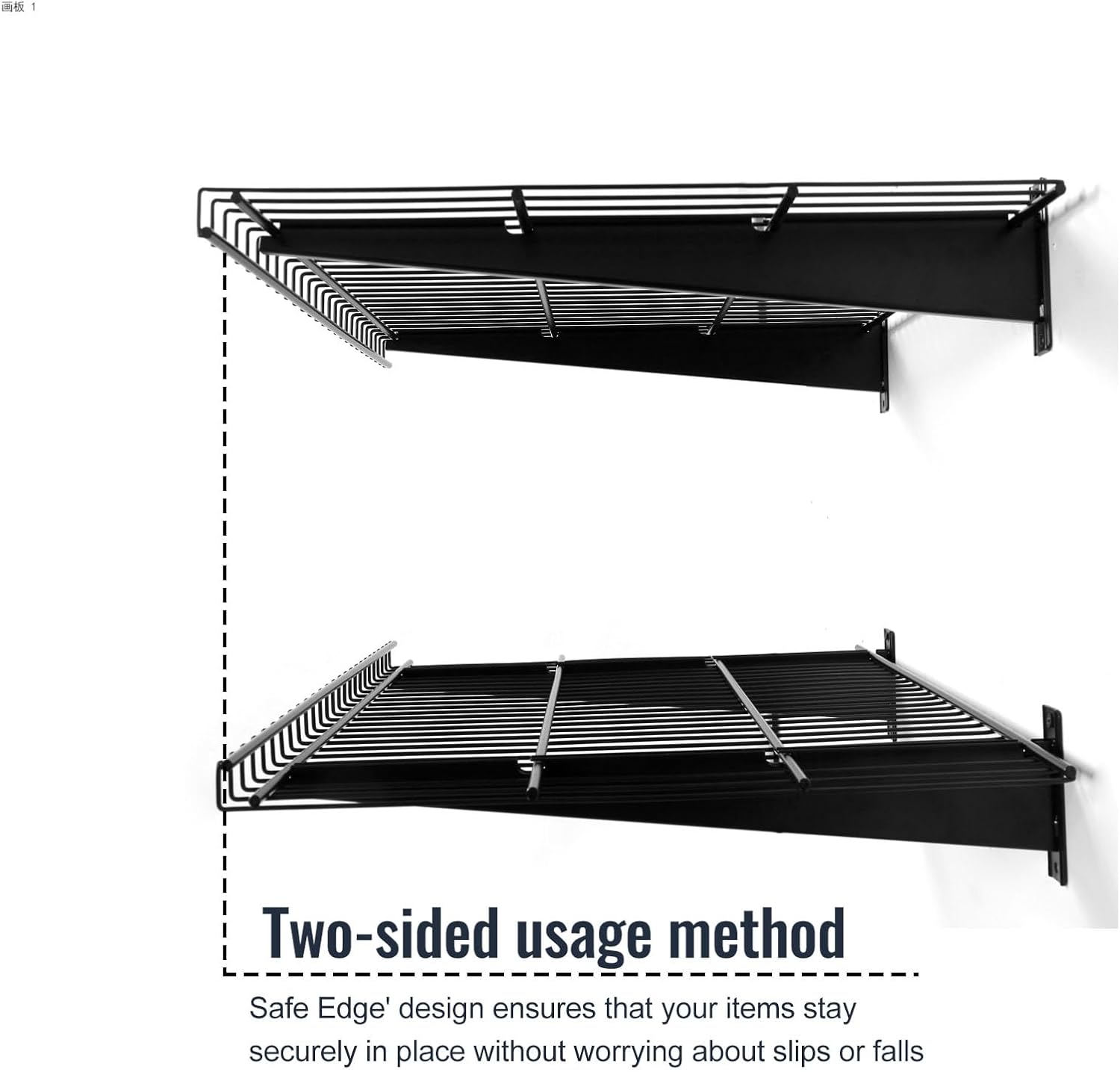 - Heavy-Duty Steel Grid Design:Crafted from industrial-grade steel, this heavy-duty wall shelf supports up to50lbs, ideal for garage shelving wall mounted or other areas like laundry rooms and kitchens.