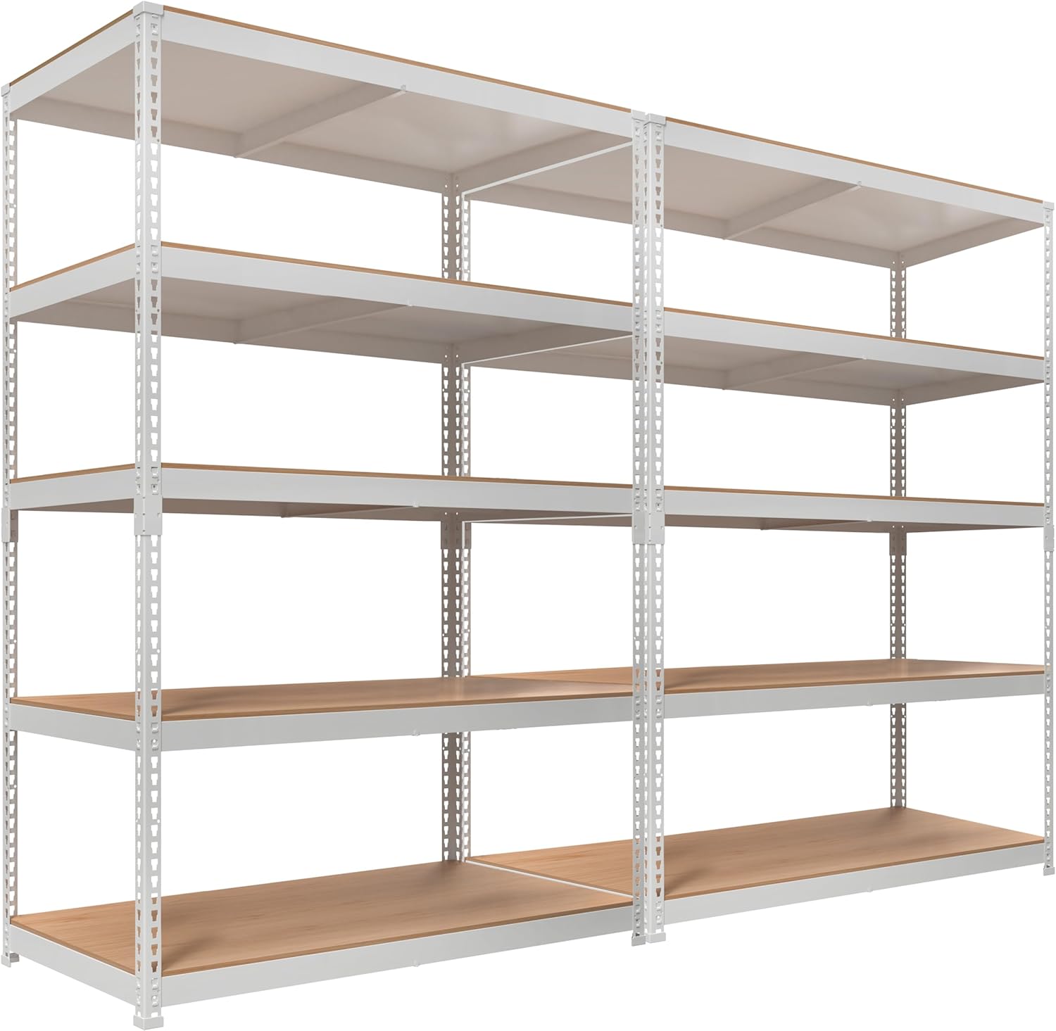 HOMEDANT White 5 Tier Laminated Boltless Heavy Duty Garage Storage Adjustable Wide Size Metal Shelving Unit Utility Rack Shelves Organization Shelf Shed Warehouse 47.7" W x 24.1" D x 71.3" H 2Pack