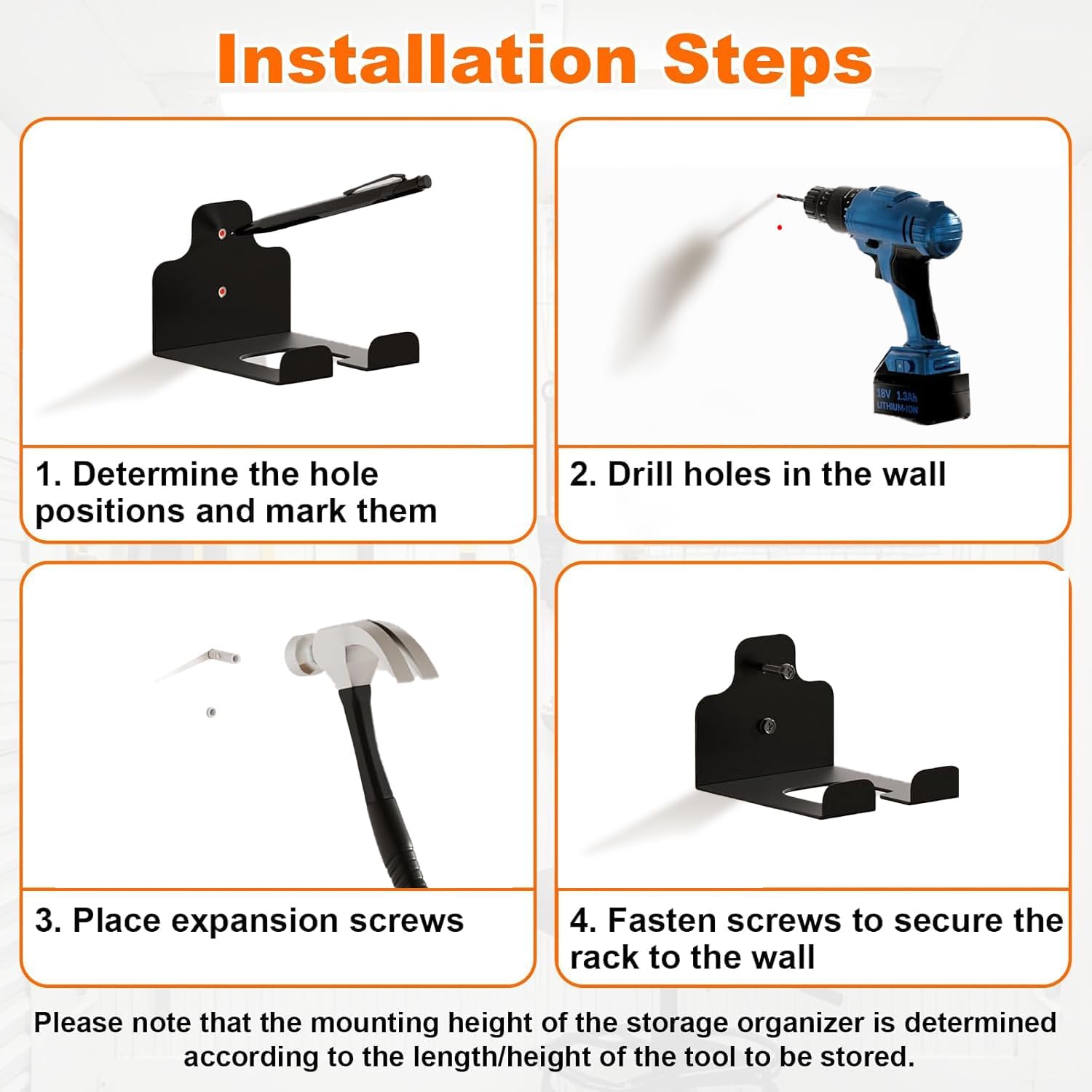 - Tool Hangers for Garage: The hanger for weed trimmer provide effective storage space for your garage, garden, basement or warehouse, it can be installed anywhere on the wall, you are free to place your own special tools where you like