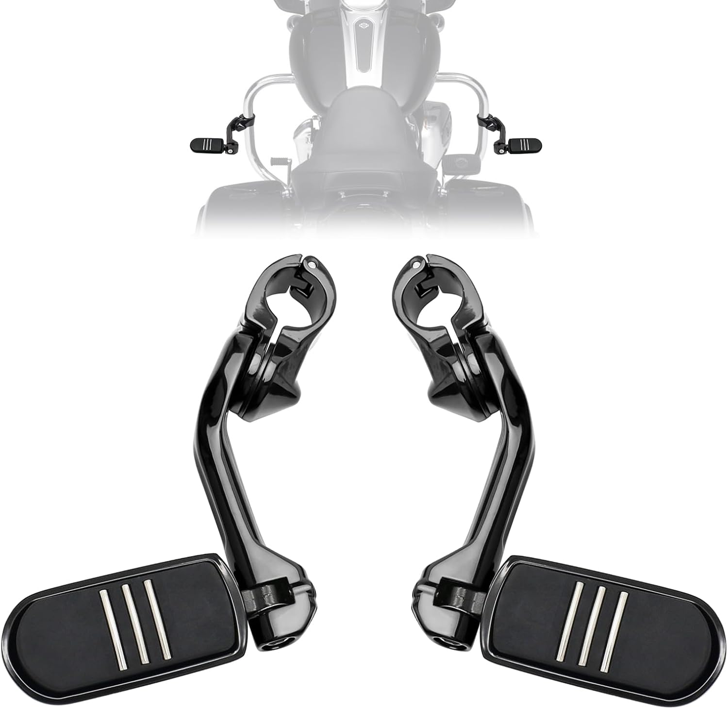 1.25" Highway Footpegs, Motorcycle Adjustable Footrest for Harley Davidson Touring Road King Road Glide Street Glide Electra Glide Dyna Sportster Softail 1 1/4" Engine Guard, Black