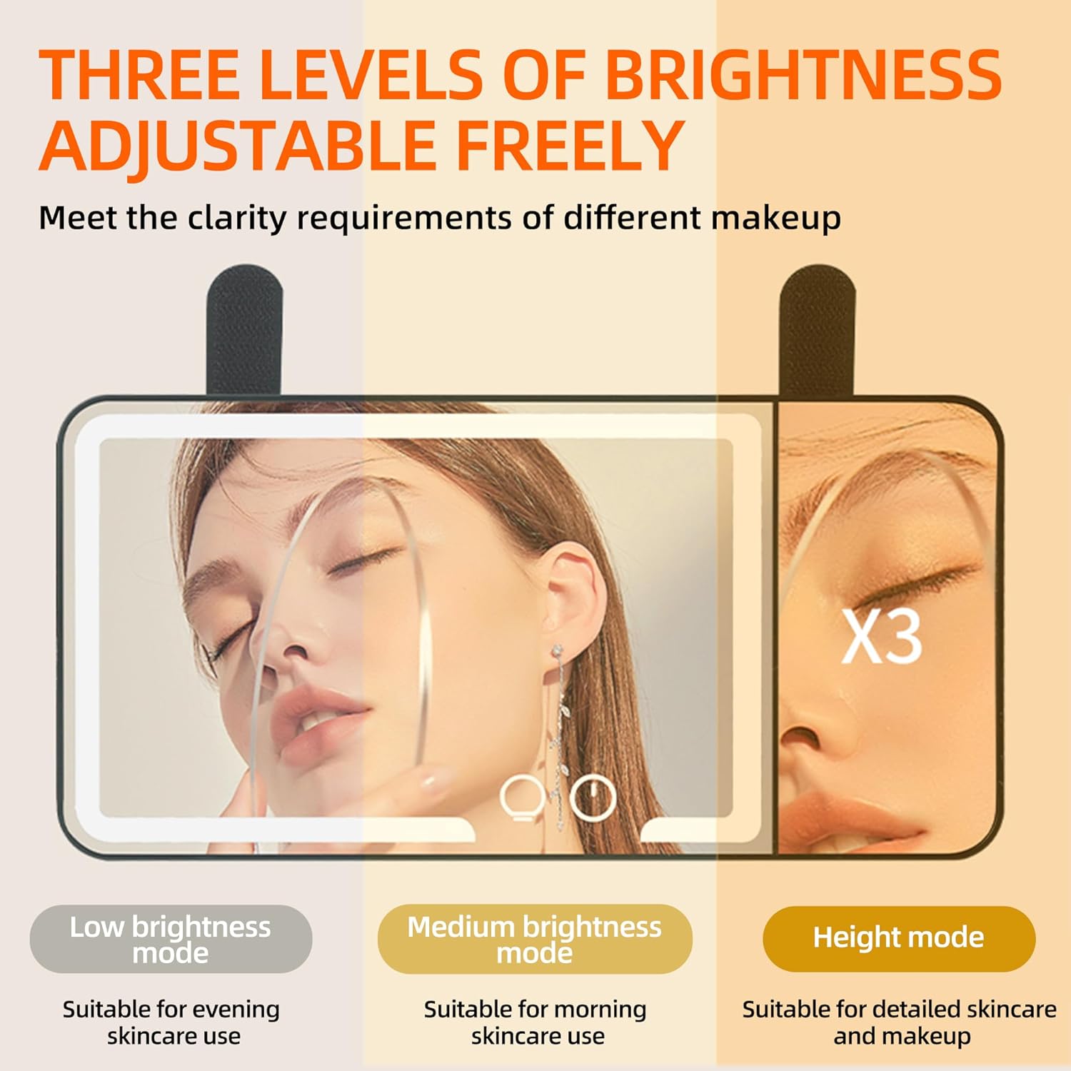- DIMMABLE DUAL COLOUR LED LIGHTS: Non-glare LED strips are more natural and soft, bright but not harsh, protect your eyes. Equipped with a triple magnifying lens so you can see your makeup more realistically.