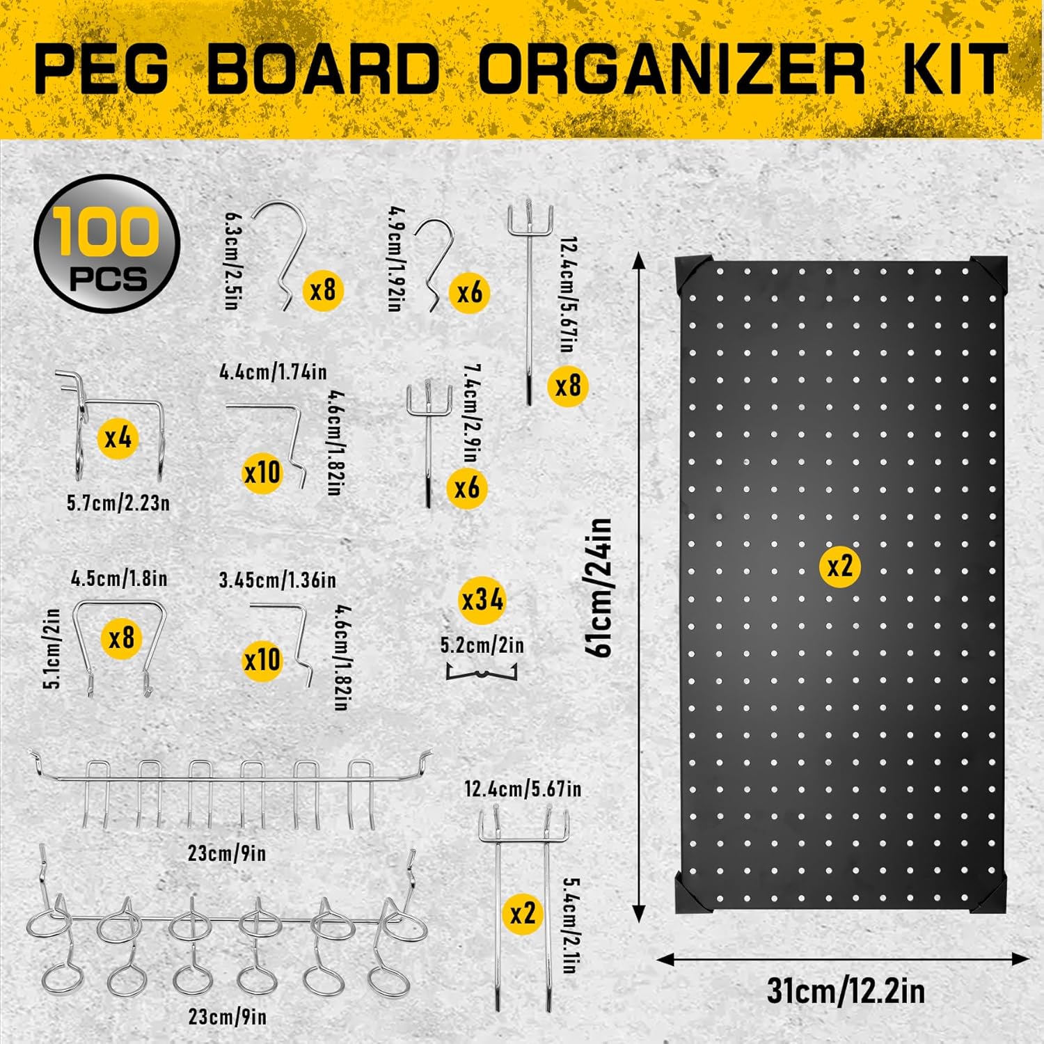 - 100PCS Pegboard Accessories Organizer Kit includes paper towel holders & heavy-duty pegboard hooks, transforming chaotic spaces into efficient garage storage systems.